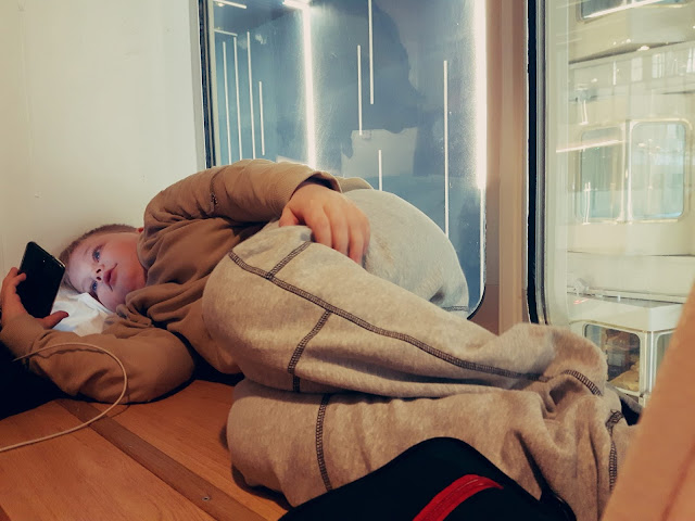 Pojilla oli kivaa, vaikka reissu olikin vähän rankka. Oli vähän kinaa ja väärin ymmärrystä sun muuta. Härdelliä harmitti ja minua harmitti ja miestä harmitti ja Banaanimies viis veisasi muiden harmista, vaan omaan tuttuun tapaansa pälpätti taukoamatta ja kertoili hauskoja tarinoita mitä keksi Tukholman vanhan kaupungin taloista. Härdellikin välillä unohti harminsa ja lähti mukaan kisailuun. Laivalla sitten ennen ruokailua otettiin iisisti, istuttiin ravintolan pöytään juomaan kahvia ja limpparia, Ligretto kortit otettiin esiin ja pelattiin siihen asti, kunnes päästiin syömään. Vaikka kaikki ei aina suju odotusten mukaan, niin hauskaahan meillä oli ja Banaanimies kaipasi myös äidin huomiota ja liikuttiin paljon kahdestaan ja Härdelli sai isäaikaa. He keskittyivät saunomiseen ja lasten kilpailuihin. Minä ja Banaanimies hengailuun, jutteluun ja shoppailuun.