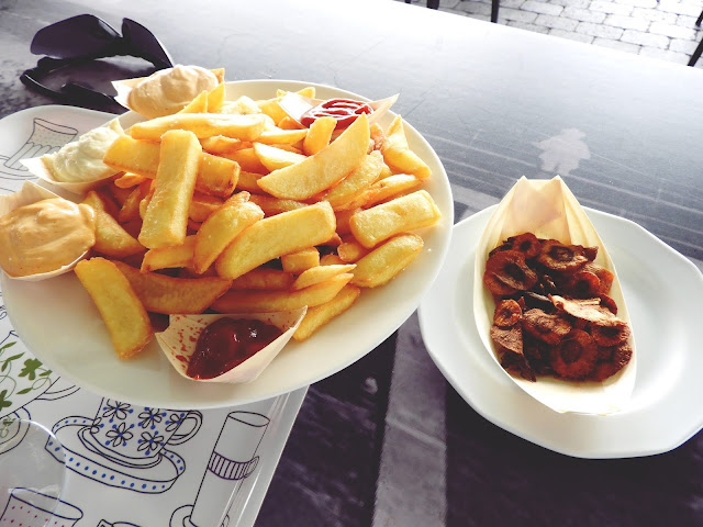 Ollaan monet kerrat todettu, ettei kannata pyöräillessä syödä mitään kunnon ruokaa, kun ei me jakseta millään ajaa enää kotiin kun massu on täynnä. Nyt oli ihan hyvät annokset ja sellaiset mikä antoi lisäpotkua kinttuihin.
