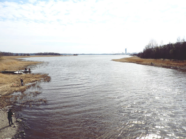 Ihana katsella miten ihmiset nauttii elämästään monin eri tavoin: Toiset istuskeli ravintolassa, toiset juoksi tai käveli, toiset pyöräili, toiset kalasti. Niin monen monta aktiviteettia tällaisella kelillä Helsingissä. En kyllä tosiaan vaihtaisi tätä kaupunkia yhtään mihinkään muuhun. Niin monenlaista täällä on. Oli ihana nähdä miten eri ikäisiä oli kokoontunut pelaamaan koripalloa rannalle ja miten puiden silmut oli vihreänä. Niin paljon muuttuu ympäristö hyvin pienessä ajassa.