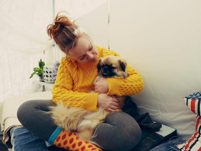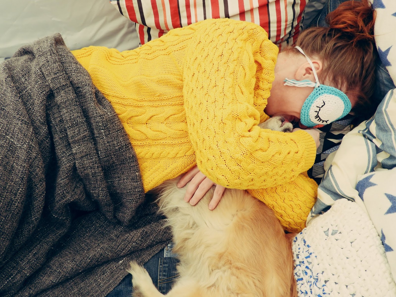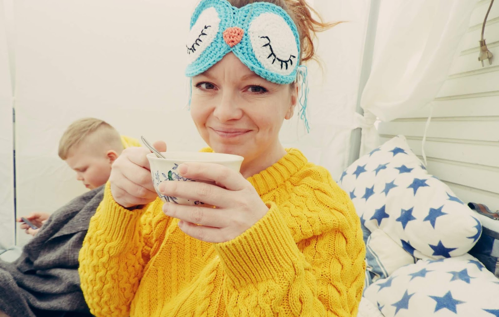 Menoa ja meininkiä ei ole puuttunut pääsiäisen ja vapun vietosta. Siksi onkin hyvä, että kotoa löytyy pehmeä unimaski, jolloin voi nukkua vaikka pihalla lämpimien peittojen alla rauhassa. Sekään tosin ei aina onnistu edes unimaskin kanssa kun meillä paljon huomiota vaativa prinsessa Nuppu, jota tarvitsee palvoa läpi unenkin ja suuren suuri vaarallinen susi, jonka ainut tehtävä on suojella äitiään kaikelta pahalta. Meidän tytöt ovat kyllä niin minun ja mieheni yhdistelmät, tytöillä on yhtä karvainen ulkomuoto kuin miehelläni ja minun upea luontoni.