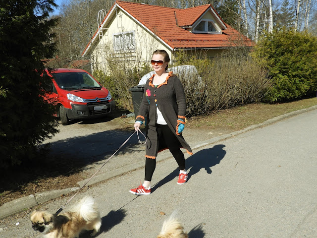 En osaa sanoa, että onko neuletakki ollut uutena tuollainen tuunatun oloinen vai onko se tuunattu tuollaiseksi. Alkuperäinenkin oli kyllä kiva mutta ei kuitenkaan ihan mun juttu sitten kuitenkaan. Minulle kun enemmän on enemmän ja vähemmän on vaan tylsä.