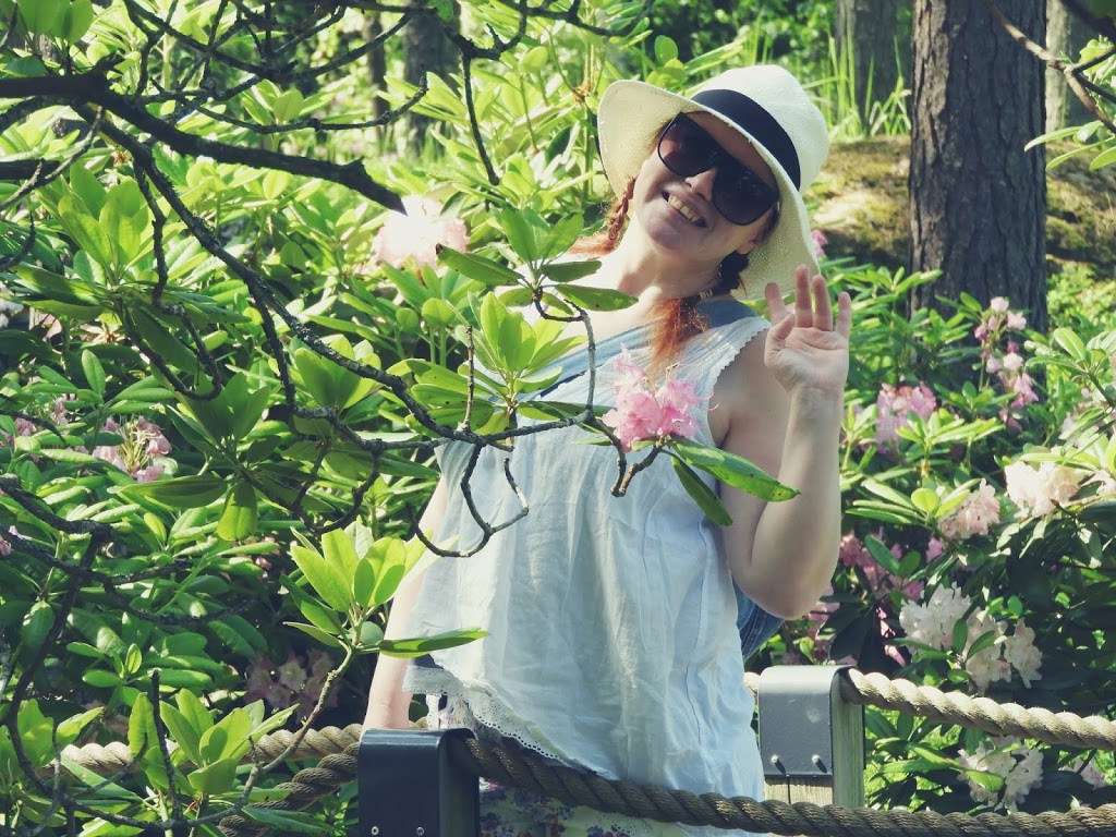 Alppiruusupuistossa on upea tuoksu, se huumaa pään, Härdellille tämä paikka on viidakko, jossa syntyy mielenkiintoisia tarinoita. Siellä myös sattuu ja tapahtuu. Nähtiin kun varikset ajoivat haukan pois alueelta kovan huudon kera. Oli muuten aika mahtavan näköistä… Emme kuitenkaan kovin pitkään olleet, johtuen siitä, etten ole ihan kunnossa tällä hetkellä. Pitää ottaa minun jaksamisen mukaan kaikki.