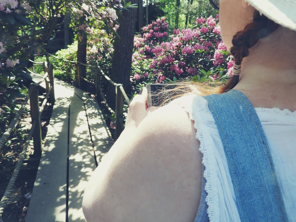 Tuttuihin maisemiin on ihana palata. Haagan Alppiruusupuisto on vähemmän tunnettu retkikohde, vaikka siellä on paljon ihmisiä joka kerta kun sinne menee, niin monet eivät siitä huolimatta tiedä tämän paikan olemassaoloa. Meidän ei tänä kesänä pitänyt tänne tulla ollenkaan, mutta jostain syystä eksyttiin pyörillä tänne siitä huolimatta. Kun lähdettiin ajamaan takaisin päin kotia, pysähdyimme syömään Pirkkolan Plotille. Grilliruokaa on kyllä tänä kesänä mennyt paljon…Ihan inhottaa jo.