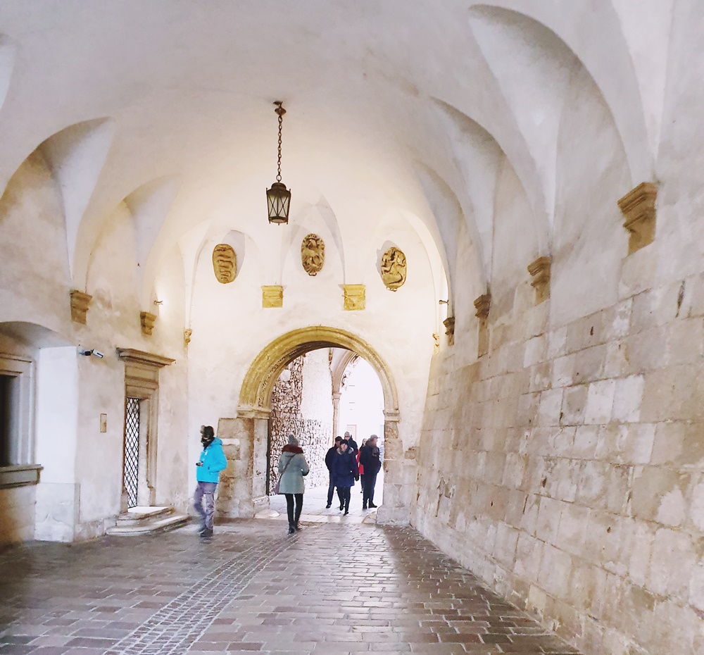 Poikien toiveena oli, että he pääsevät kiertämään Wawelia. Wawelissa ei ollut joulun aikaan kuin kaksi näyttelyä avoinna. Iso osa linnaa oli suljettuna. Kannattaa saapua paikalle juuri silloin kun ovet aukeaa, sillä kyseessä on todellinen turistirysä ja jono syntyy hetkessä. Saavu siis mahdollisimman aikaisin. Mieheni joutui jonottamaan meidän lippuja lähes 30 minuuttia. Lippujen hinnat ovat myös arvokkaat, Puolankin mittakaavassa. Mutta siellä on myös sellainen tapa, että osa päästetään ilmaiseksi, en tiedä millaisella laskutavalla he laskee ilmaiseksi pääsevät mutta meidän porukka oli yksi niistä, jotka pääsivät ilmaiseksi sisään.