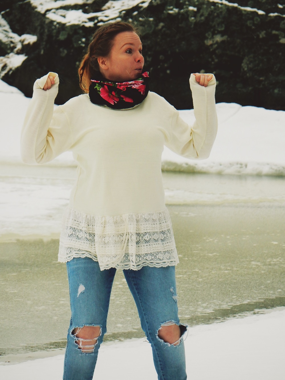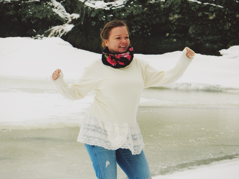 Tämä siis tarkoittaa lyhykäisyydessään sitä, että kaikki päällä olevat vaatteet ovat joko kirpparilta hakittuja sekä tuunattuja vanhoja vaatteita. Kun huomaa, että nyt on asu kerätty näin, tulee sellainen fiilis, mitä ei osaa edes oikein sanoin kuvailla. Tulee ihan sellainen olo, että vau…