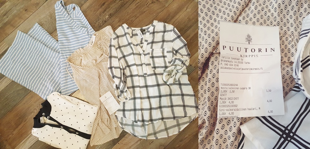 Puutorin kirppis oli kiva uusi yllätys, puutorin kupeessa. En ole ennen täällä käynyt, enkä tiedä miten pitkään se on ollut toiminnassa tuolla. Aika paljon oli myynnissä juuri pikamuotia ja selkeitä vintagetuotteita ei juuri ollut. Yksi loosi tosin löytyi ja sieltä olisinkin napannut ison määrän ihania vintagevaatteita, jos vaan tissini olisivat mahtuneet vaatteen sisälle. Näin ei kuitenkaan tapahtunut, joten ne ihanuudet saivat jäädä sinne, valitettavasti. Vaikka montaa vintage vaatetta en löytänyt, niin jotakin kuitenkin ja yhden vintage paidan nappasin mukaani. Kaikin puolin onnistunut reissu siis.