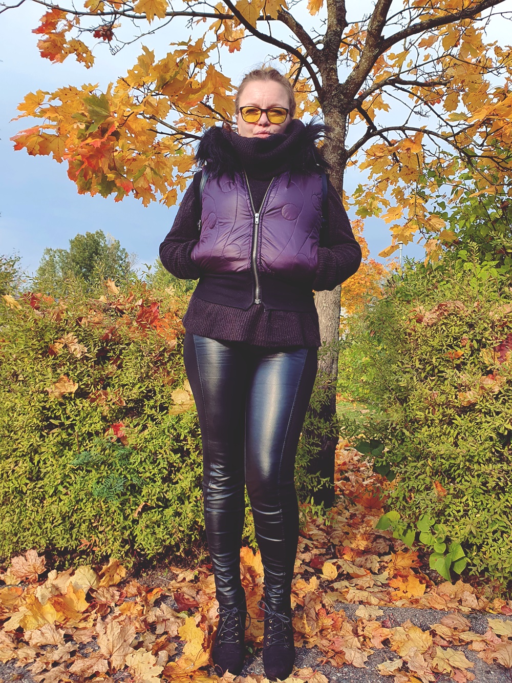 Nämä kuvat on lähinnä kuvituskuvia, oli ihana ruska yksi aamu kun mies lähti viemään minua töihin. Päällä oli itse tehtyä vaatetta, sekä kirppislöytöjä, sellainen Lumppumaakarin ekstaasi jälleen. Tietenkin siitä kaikesta piti saada kuva ja laittaa Instaan kaikkien nähtäville. Mutta, halusinko minä olla tässä keskiössä? Halusinko, että minusta puhutaan? En, halusin esitellä ihanan ruskan, kivat kirppislöytöni sekä itse tehdyn vaatteen, joka on minulla kovassa käytössä, ollut jo vuosia.