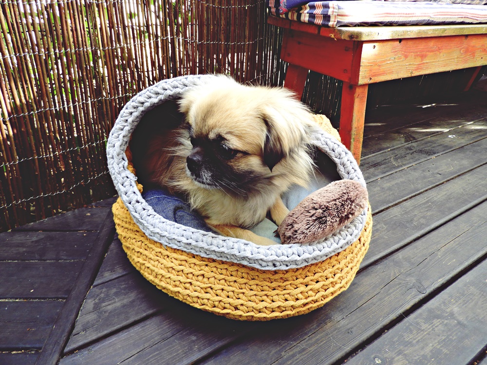 Pesän oli tarkoitus olla tarpeeksi pieni, että Söpö tuntee olevansa kohdussa, mutta tarpeeksi iso, että pystyy muuttamaan asentoaan helposti.  Tarve tälle pesälle on suuri, sillä Söpö tarvitsee niin paljon huomiota, sekä turvaa. Koira on jo 7 vuotias, mutta aivan vauva, nukkumiseen tarvitsee aina tuttinsa ja minun syli on se kaikkein tärkein 24/7. Tuon pesän tarkoitus on rauhoittaa Söpöä, antaa äidin kohdun fiiliksen, turvallinen kolo kun minä olen poissa tai kun Söpö hermostuu jostakin.