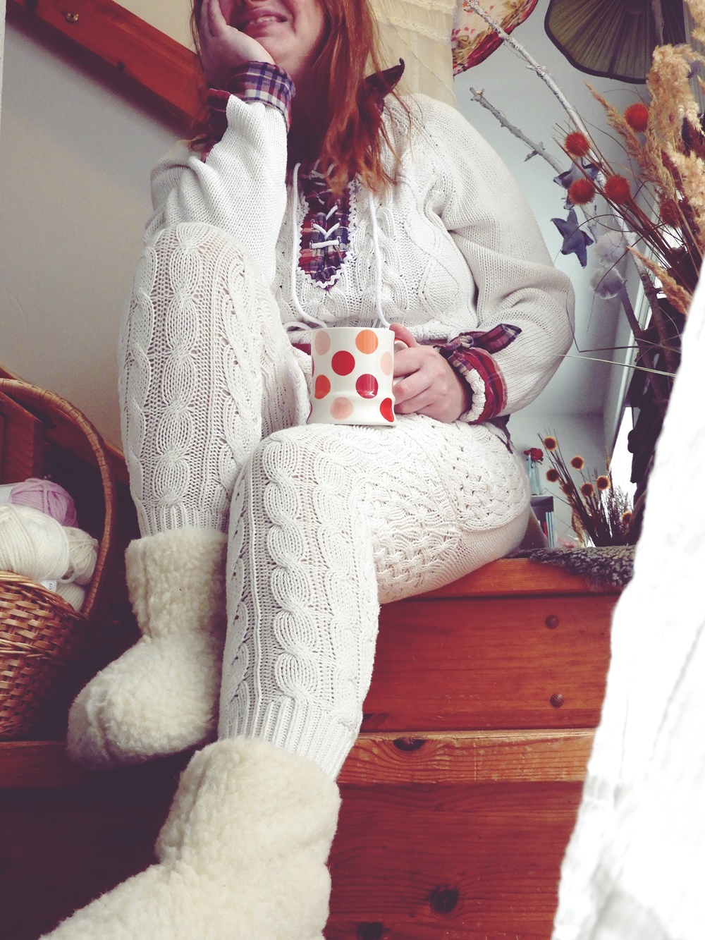 Alunperin tarkoitus on ollut, että hullunkurisemmat pöksyt, sen paremmat. Minulle se sopisi myös erittäin hyvin. Mutta minusta myös hienot, kauniit ja näyttävät swantsit sopivat itselleni parhaiten. Siksi olenkin tehnyt niitä vähän toisenlaisesta vinkkelistä, tai siitä vinkkelistä mitä täällä meillä Suomessa tehtiin. Eli hienoista kirjoneuleista saatiin aika mageita pöksyjä aikaiseksi. Villaa vaan ei oikein joka aika viitsi käyttää, niin koitin tehdä myös puuvillasta. Nämä toimii niin kivasti näin kotiasuna, ulkoilussa ei niinkään. Siihen kannattaa valita aina ne villaiset.