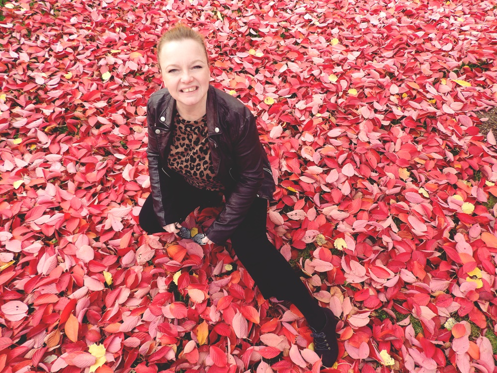 Varaudun siis aina, kun mennään johonkin, että kuvia voidaan ottaa ja paljon. Miksi puistoa ei sitten kuvata, vaan minua? Koska jokaisen pitää itse mennä tutustumaan ja kokemaan tämä puisto. Me tutustuttiin hyvin pieneen osaan tätä paikkaa ja toivonkin, että ensi kesänä mennään uudelleen ja tutustutaan koko alueeseen. Uskon, että kesän kukkaloisto on yhtä henkeä salpaavaa kuin oli ruskan loistokin. Tämä puisto on kyllä mielenkiintoinen kohde.