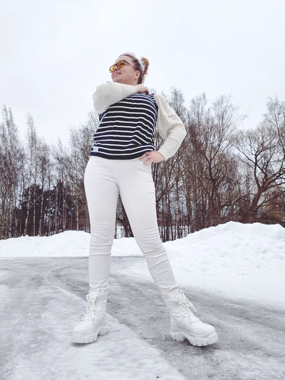 Valkoinen kesäinen toppi on löytynyt viime keväänä ilmaisosastolta, olen kerran pitänyt paitaa päällä, mutta en oikein innostunut siitä, vaikka tykkään paidan mallista ja materiaalista. Syksyllä taas löysin tämän raitapaidan ilmaisosastolta ja myös tämä oli kerran päälläni, mutta tämän kanssa kävi samoin kuin tuon topinkin, että käytin sen yhden kerran ja totesin, ettei se ole minua varten sitten kuitenkaan. Päätin lopulta yhdistää nämä kaksi paitaa toisiinsa ja tehdä paidan, josta pidän.