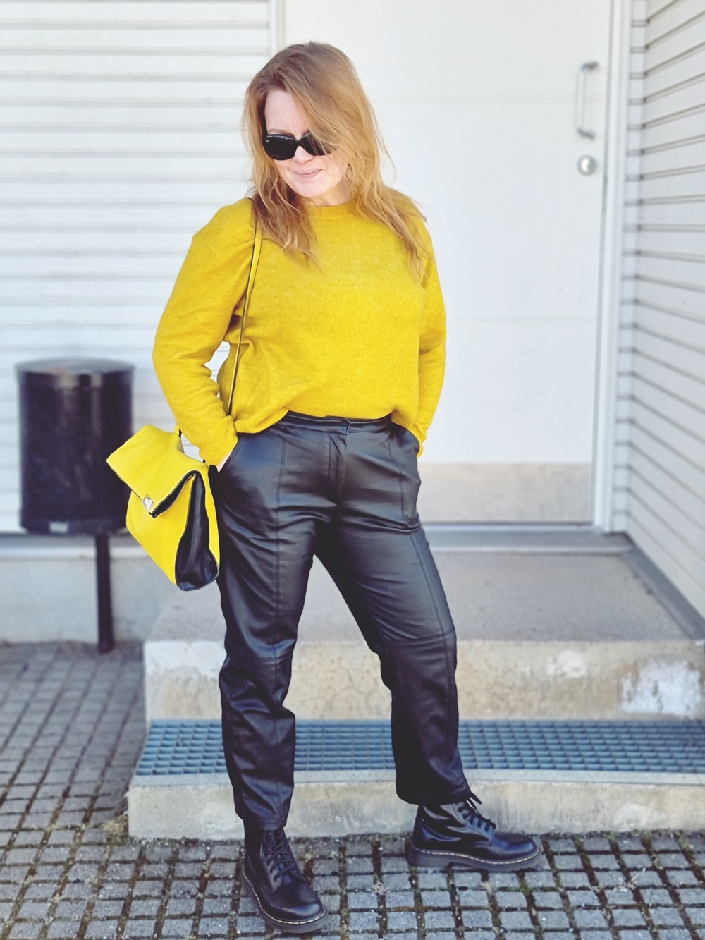 Hyvä kuulla että voit jo paremmin, ja toivottavasti jatkossa vielä paremmin. Ihana tuo keltamusta asu laukkuineen.