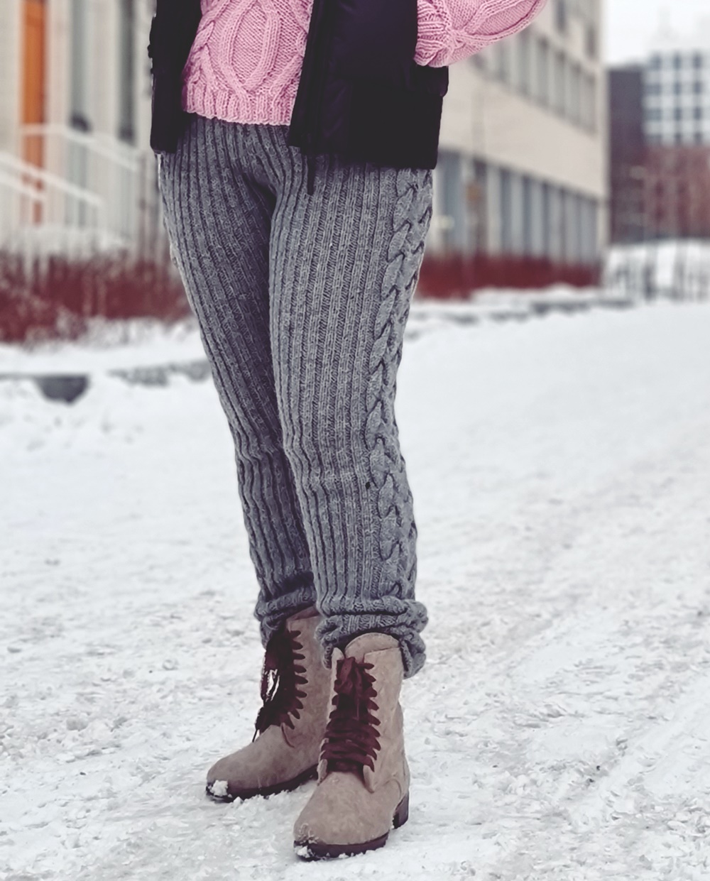Valitsin siis tällä kertaa villahousut, jotka olen tehnyt itselleni vuonna 2013 ja näihin ei ole ohjetta, ne ovat omasta päästä väännetty. Ja innostuin kyllä villahousuista nyt sen verran paljon, että seuraavat ovat tulossa, kunhan muut työt on saatu valmiiksi. Villapaita taas on Novita syksy 2012 -lehden ohjeella tehty ja myöhemmin tuunattu, laittamalla keinoturkisreunus huppuun. Linkki alla: