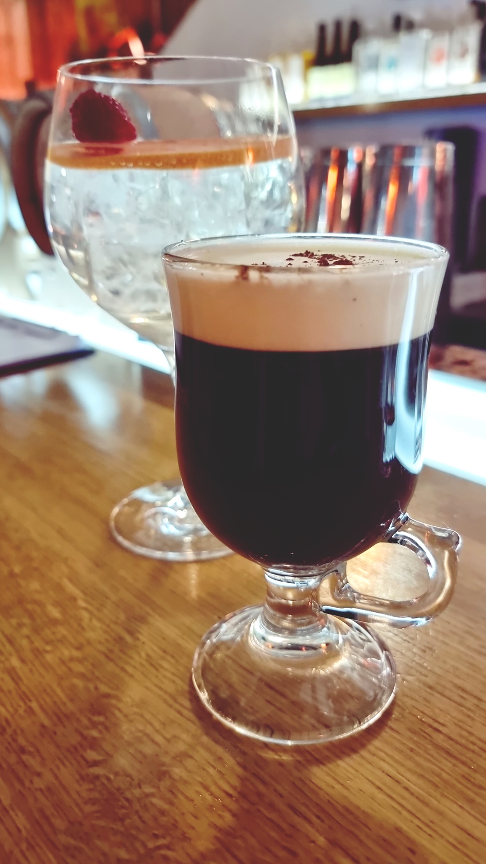 Istuimme baarissa ja nautimme tunnelmasta sekä toistemme seurasta pitkästä aikaa ihan kahdestaan, jos ei siis lasketa niitä kymmeniä ihmisiä, jotka sattui olemaan meidän kanssa samassa paikassa. Irish coffeen jälkeen nautin vielä lasillisen viiniä ja se riitti minulle, mieskin oli tyytyväinen omiin valintoihinsa ja kohta olikin aika valua kotiin. Emme yleensäkään viihdy kovin pitkään ravintolassa, jos emme syö samalla. Ruoka on se meidän juttu, jos se ei ole tullut selväksi…
