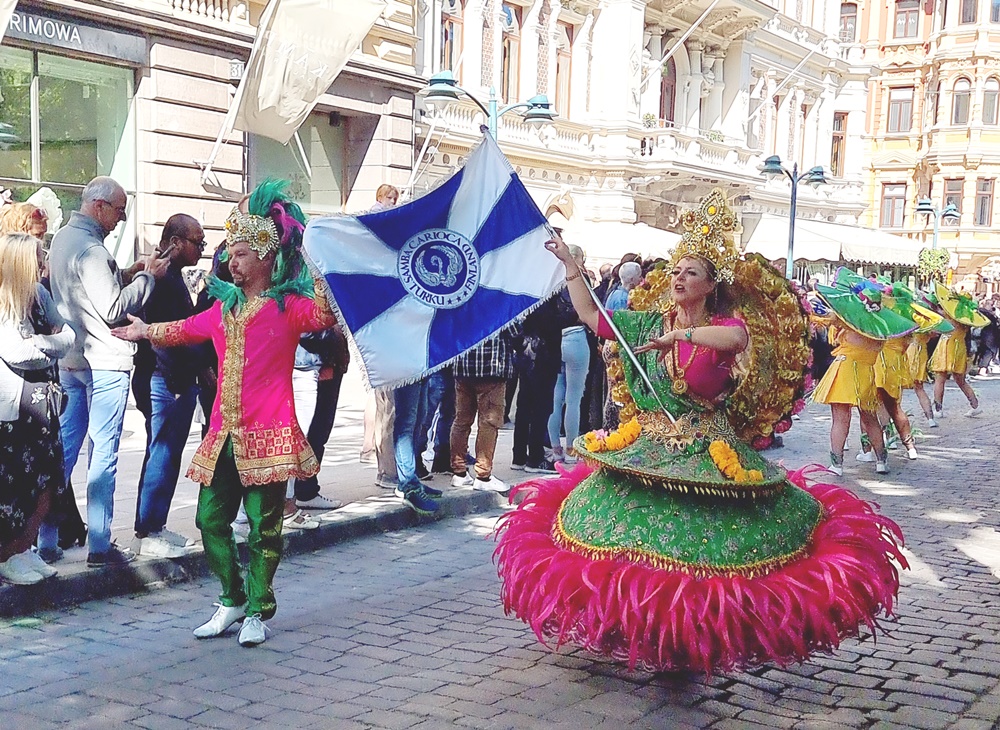 Itse olen ollut muistaakseni 2014 viimeksi itse kulkueessa mukana tanssimassa. Sambaahan en enää harrasta ollenkaan, sillä työt on sellaiseen aikaan, ettei treeneihin oikein ehdi ja viikonloppuisin useasti on sitten muita juttuja. Kaikesta huolimatta karnevaalit ovat minun kesän kohokohta, joko itse mukana, katsomassa tai huoltojoukoissa. Tänäkin vuonna homma tuli muutaman päivän varoajalla, mutta se ei haittaa yhtään. Olin kuitenkin menossa katsomaan ja kannustamaan Cariocaa, Turun sambakoulua, jossa viihdyin monta vuotta.