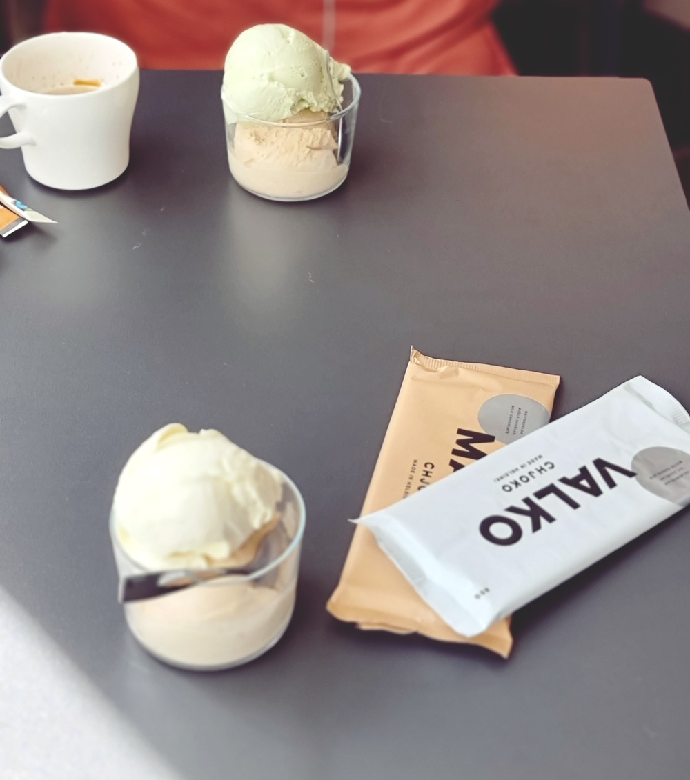Mies halusin ehdottomasti päästä pienelle kävelylle ja minä älläsin tietenkin jäätelöä. Oltiin lähdetty aika myöhään liikkeelle, joten suunnitimme kohti Krunan Terdeä ja tilasimme siitä skagenit ja lasilliset viiniä. Herkuttelun jälkeen matkasimme kohti naapurissa olevaa Chjoko kahvilaa. Valitsimme omat jäätelöt ja suunnitimme tällä kertaa ihan sisätiloihin istuskelemaan ja nauttimaan Chjokon herkuista. Chilijäätelö tosiaan maistui chilille ja oli todella herkullista. Suosittelen tätä paikkaa, jos haluaa maistella hiukan toisenlaisia jäätelöitä. Ei ole siis mitään ihan perusjäätelöä, jota saa joka paikasta.