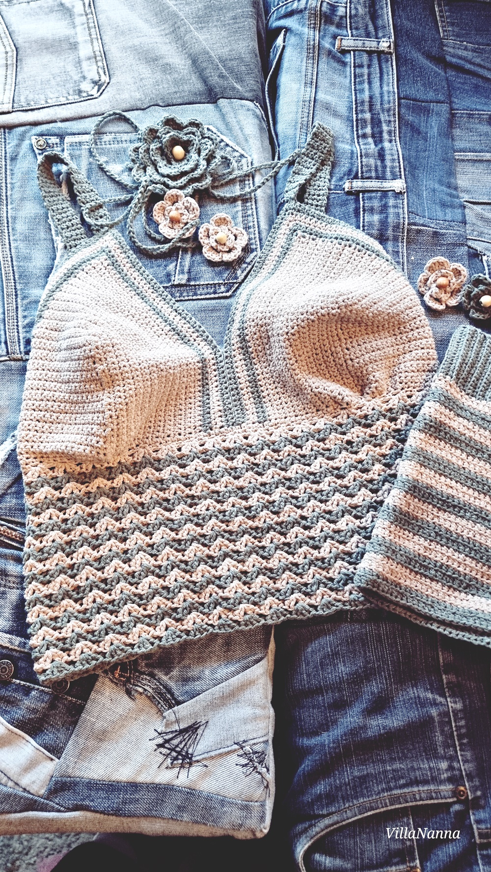 Asuun on siis valmistumassa jossakin kohtaa vielä jotakin, mutta se on sitten sen ajan murhe, milloin. Tämän kesän aikana kuitenkin. Ohjeita ei tosiaan ole, kunhan virkkailin, enkä osaa edes sanoa toimiiko toppi mitenkään, en ole kokeillut koko toppia vielä, shortsit on testattu ja ne toimii oikein hyvin. Sormukset on minulle tuttua kauraa ja niistä myös nuoret innostui kovin tässä keväällä. Sormuksia siis tuli valtava määrä sielläkin.