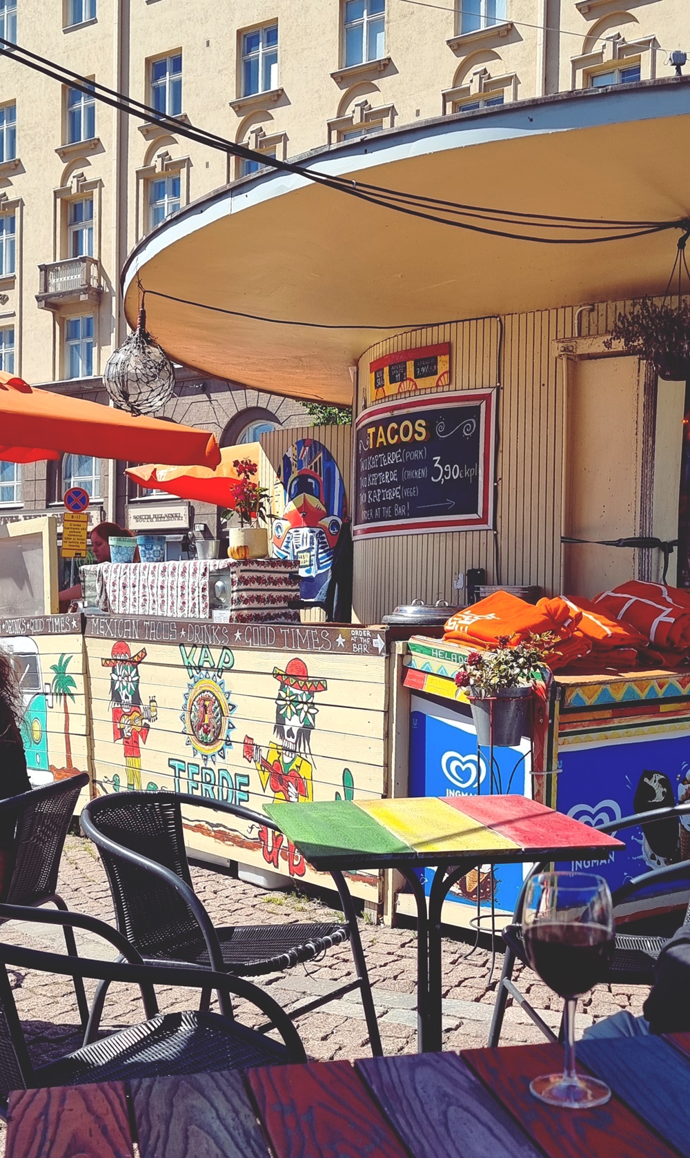 Viikonloppuna me teimme myös pikkuruisen kävelypyrähdyksen Hietalahden kirpparille, joka on jälleen kesäajan avoinna, Heitalahdessa on myös lippakioski nimeltään Kap Terde ja siihen päätimme istahtaa nauttimaan pikku huikopalat, ja ai että mitkä huikopalat ne olivatkaan. Ai, niin Hietalahden kirpparilta ei lähtenyt mitään mukaan. Kierrettiin vain ja katsottiin mitä on tarjolla, lähinnä korut kiinnosti meitä, ei oikein muu.