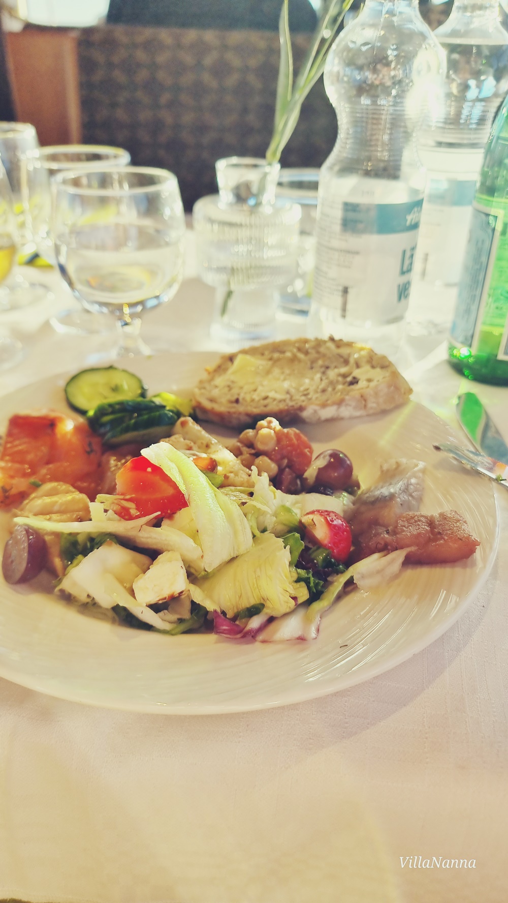 Itse tykkään näistä minikokoisista risteilyistä tuonne saaristoon, on kiva syödä ja nauttia perheen kesken hyvästä ruoasta ja toistemme seurasta. Tällä kertaa matkasimme bilelaiva Kingillä. Laiva oli täynnä porukkaa. Kaikki ruokapaikat olivat täynnä ja kansipaikat täyttyivät myös iloisista ihmisistä. Puheensorina täytti laivan ja ihmiset nauttivat herkuista. Menu oli tarkkaan harkittu ja vaihtoehdot olivat sellaisia, ettei minun tarvinnut jättää oikein mitään pois lautaselta. Vain makkarat sai jäädä muiden syötäviksi.