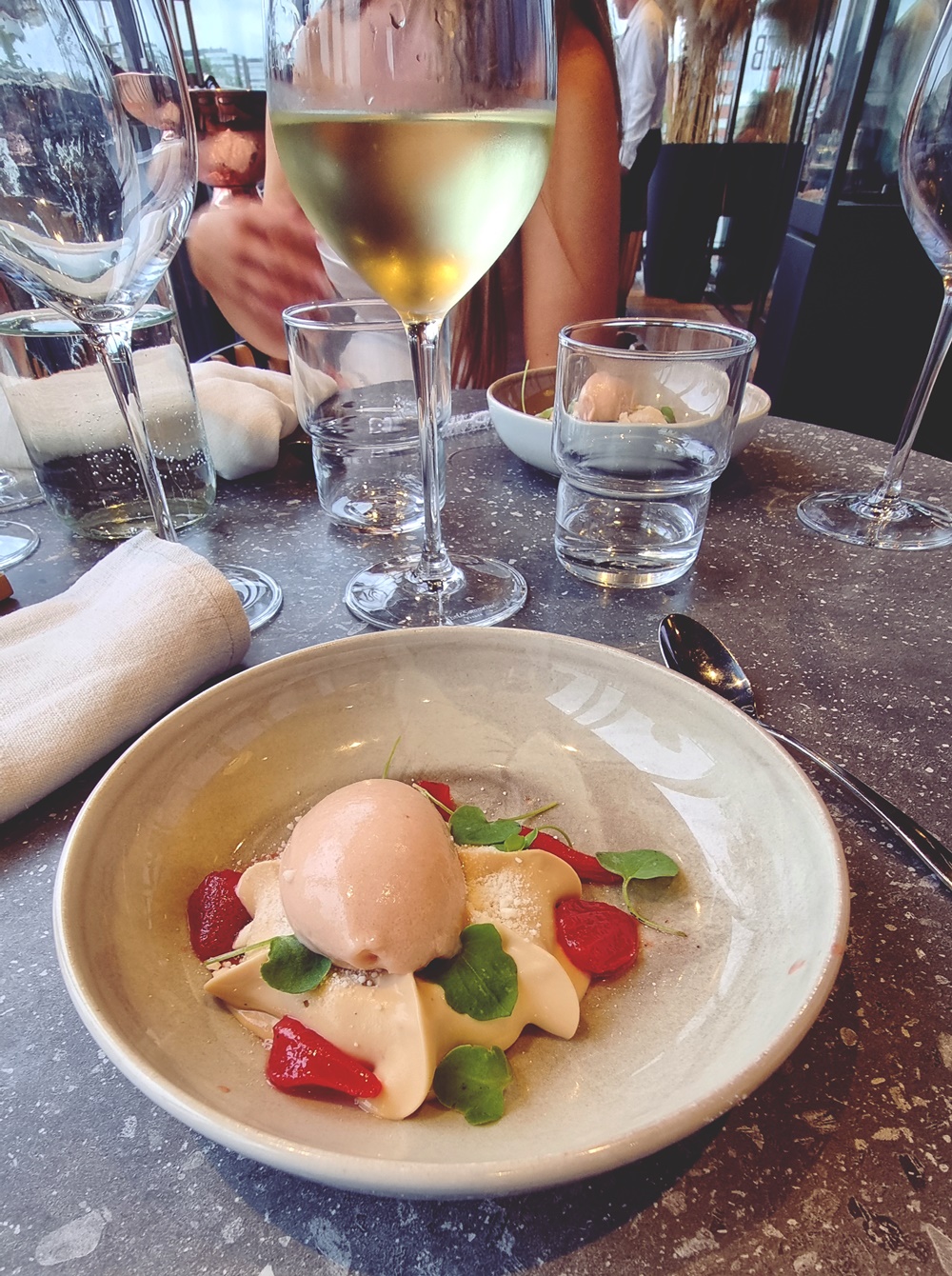 Ilta sujui mukavasti ruoasta nauttien, jutellen vieraiden kanssa ja puheita kuunnellen. Nobi oli suloisen pieni paikka, Turun jokirannan alajuoksulla, lähellä Turun linnaa. Meidän juhla-alue oli terasilla, jonka ikkunat oli suljettu ja näin tunnelma oli vähän kuin olisi ollut Vistulajoella nauttimassa illasta. Vesibusseja kulki edes takaisin. Juteltiin Ukko-Pekan viimeisestä kesästä. Se on muuten Turun pahin virhe minkä tekevät, että Ukko-Pekka myydään Ruotsiin ja Vaakahuone muuttuu joksikin muuksi mikä se nyt on. On etsittävä uusi lempiravintola, jonne kokoonnumme joka kevät perheen kanssa.