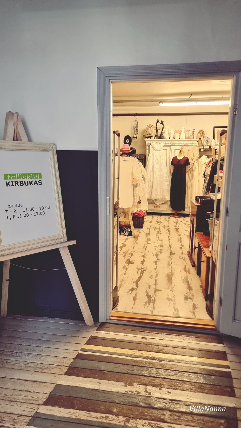 Päätimme sitten kuitenkin lähteä kiertämään, mutta miehen olo alkoi pahentua, joten pysähdyimme Tellisikivi Kirbukassa. Mies nukahti nojatuoliin ja minä lähdin kiertämään myymälää. Sieltä löysin yhden ihanan boheemin mekon, jonka alkuperää en löytänyt edes Googlesta. Elän toivossa, ettei olisi mikään Temun tai Sheinin kaltaisen paikan mekkoja. Miehen olokin hiukan koheni kun sai nukahtaa ja kun minun kierros kesti aika pitkään, niin sai nukkua hyvän tovin. Mutta lopulta kun kierrosta jatkettiin, niin miehen olo ei vain parantunut, joten käännyimme takaisin kohti vanhaa kaupunkia. Siitä onkin helppo sitten siirtyä kohti laivaa kun sen aika koittaa.
