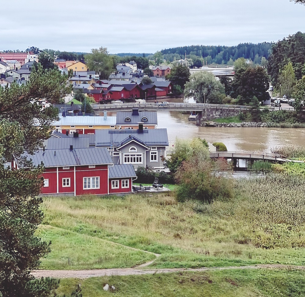 Tultiin Porvooseen aika myöhään iltapäivästä, joten oikeastaan kaikki paikat olivat suljettu, joitain turisteja vilisteli siellä täällä ihmettelemässä tätä suloista pientä paikkaa. Me lähdimme vanhan kaupungin laitamille kävelemään ja löydettiin meille ihan uusi asia nimittäin Porvoon linnanmäki. Sinne piti siis sukeltaa katsomaan vähän historiikkia tästä alueesta. Eihän siellä enää mitään muuta ollut kuin kumpu mutta uutta opittiin paljon.