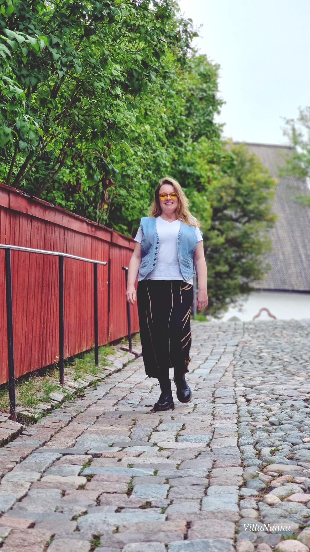 Minulla oli jo aamusta lähtien tarkka visio siitä, millaiseen asuun sonnustaudun, kun lähdemme Porvoon katuja kulkemaan. Sateisesta päivästä huolimatta päätin laittaa sellaisen asun, joka on enemmän siirtymäasu tulevaan syksyyn. Sillä ihan vielä ei ole niitä kurjia syksyisiä päviviä, mutta pian nekin tulee. Tosin, minulla on vielä kaikki ihanat syys -ja talvivaatteet varastossa, joten on ihan pakko yrittää pukeutua lämpimästi kesävaatteilla.