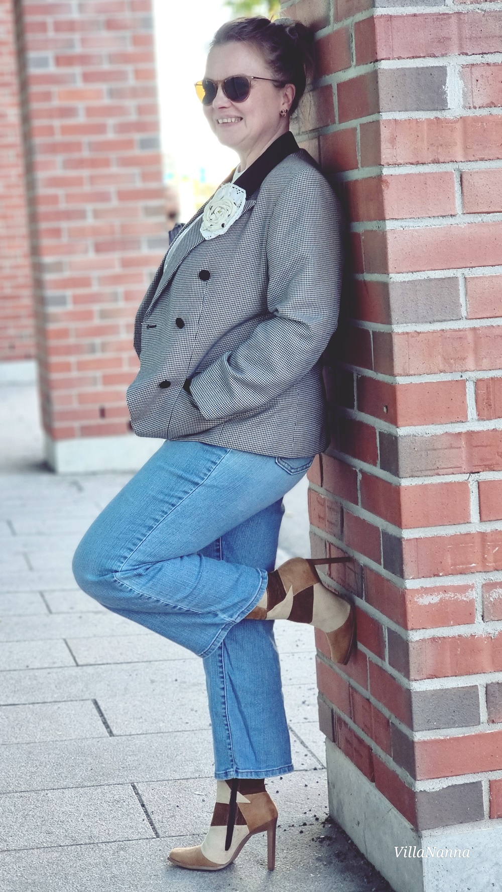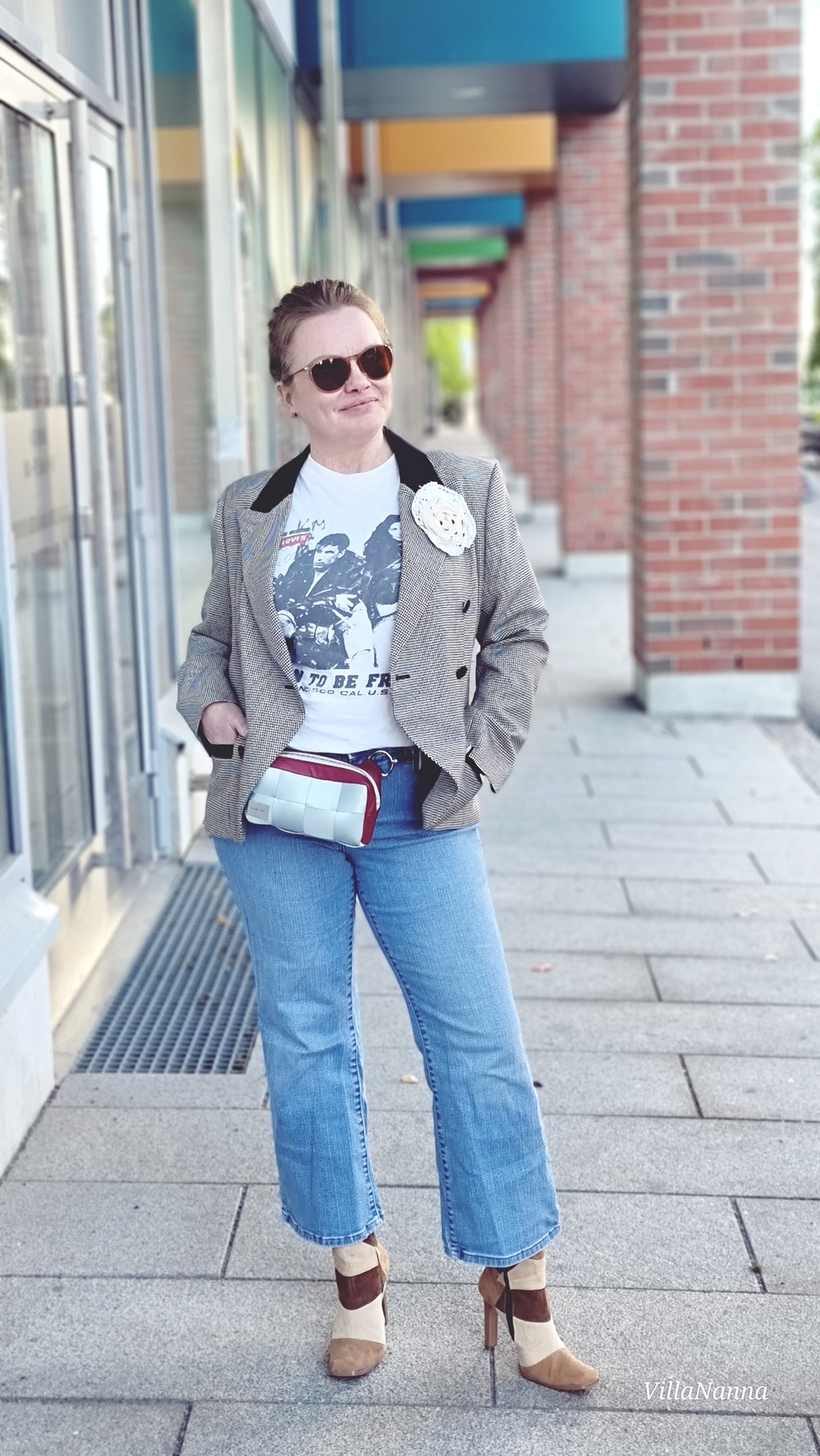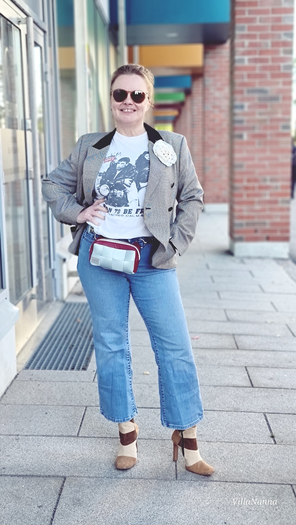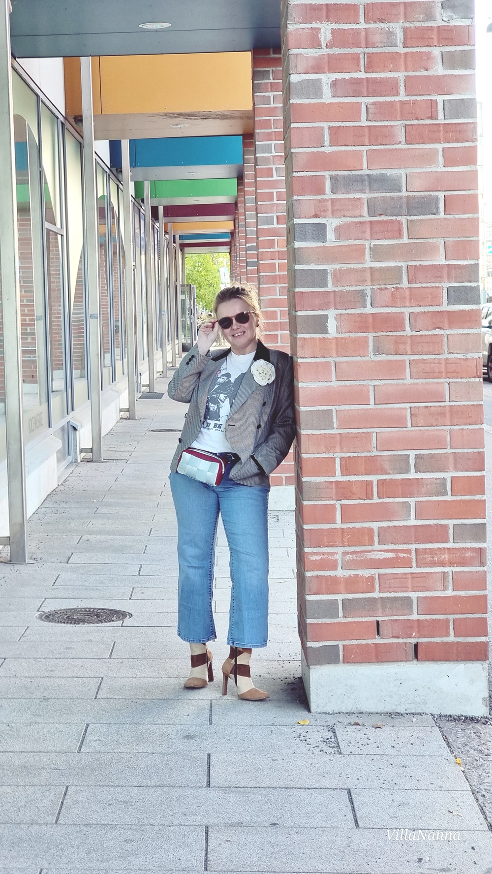 Ihan super hieno tää asu! 😍 Pidän värien yhdistelystä ja nuo kengät ovat persoonalliset, hyvin tulevat esille noiden farkkujen kanssa. Joensuussa oli joskus sellainen pieni putiikki, josta sai tuollaisia saappaita ja nilkkureita, joissa oli kuin paloista tehtyjä leikkauksia. Kenkien malli on todella kaunis ja jotenkin tuo väritys mallin kanssa tuo mieleen 70- luvun tyylin hyvällä tavalla. 😊