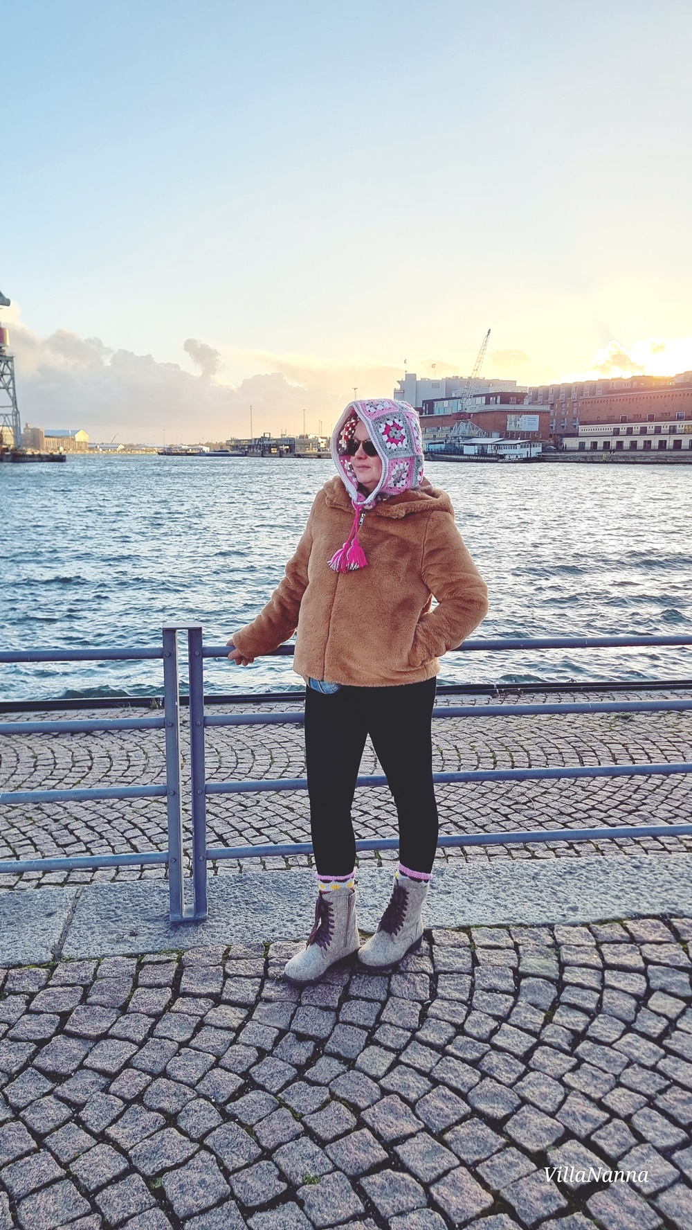 Tämän jälkeen laitoin uuden kuivan pyyhkeen pyykkitelineen päälle ja asettelin hupun siihen, vielä hiukan esentoon asettelua ja jätin kuivumaan siihen. Näin hupusta tuli ihanan pehmeä, ei kutittava ja sai myös hyvän loppusilauksen, ei ole enää kurtussa. Jä tätähän voi sitten yhdistää ihan minkä tahansa vaatteen kanssa. Minulla on ollut tämä päässä ihan päivittäin nyt.