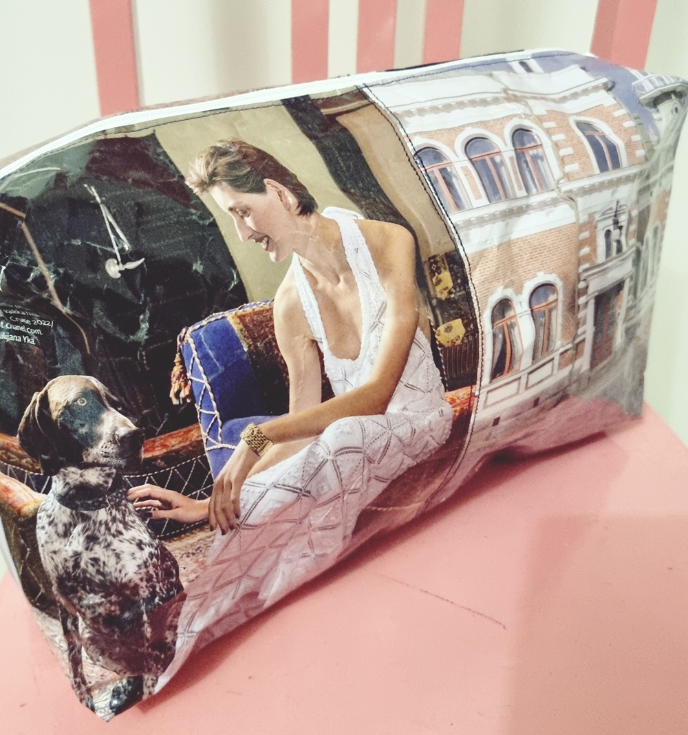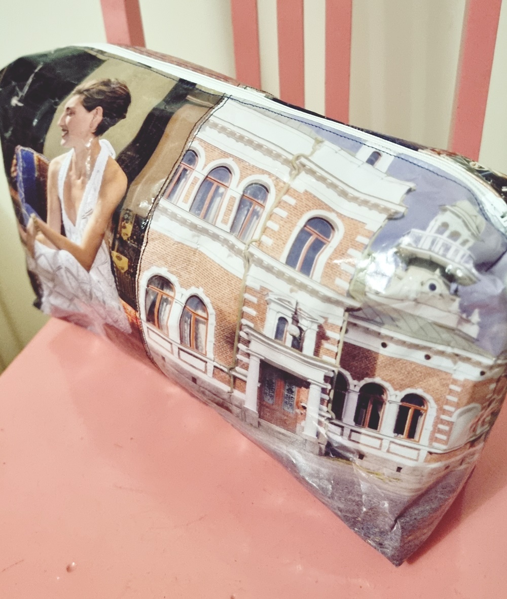Paperista iso toilettepussi, tarvitset vain kontaktimuovia, vähän kangasta ja vetoketjun. Lupaan, että kiiltäväpintaisesta paperista tehty pussukka on haaste. Ei muuta kuin hommiin vain, jos haasteet kiinnostaa. Minua nähtävästi ainakin kiinnosti kun tämän tein. Pussukka lähtee muuten meidän reissulle mukaan ja varmasti näette siitä lisää kuvia.