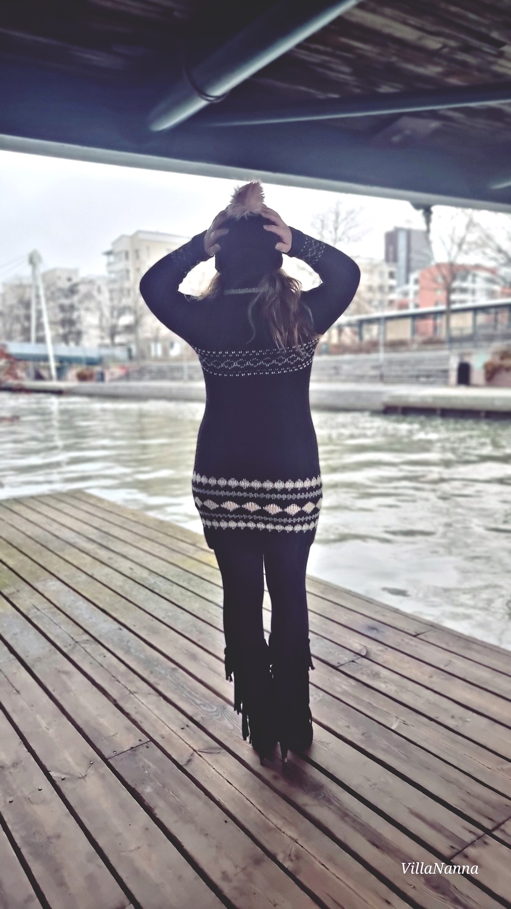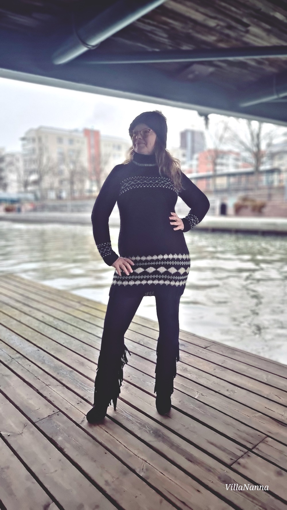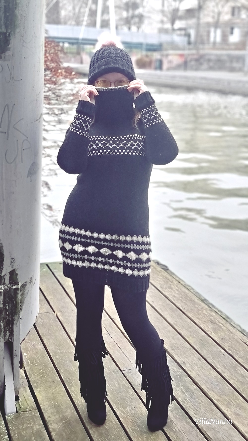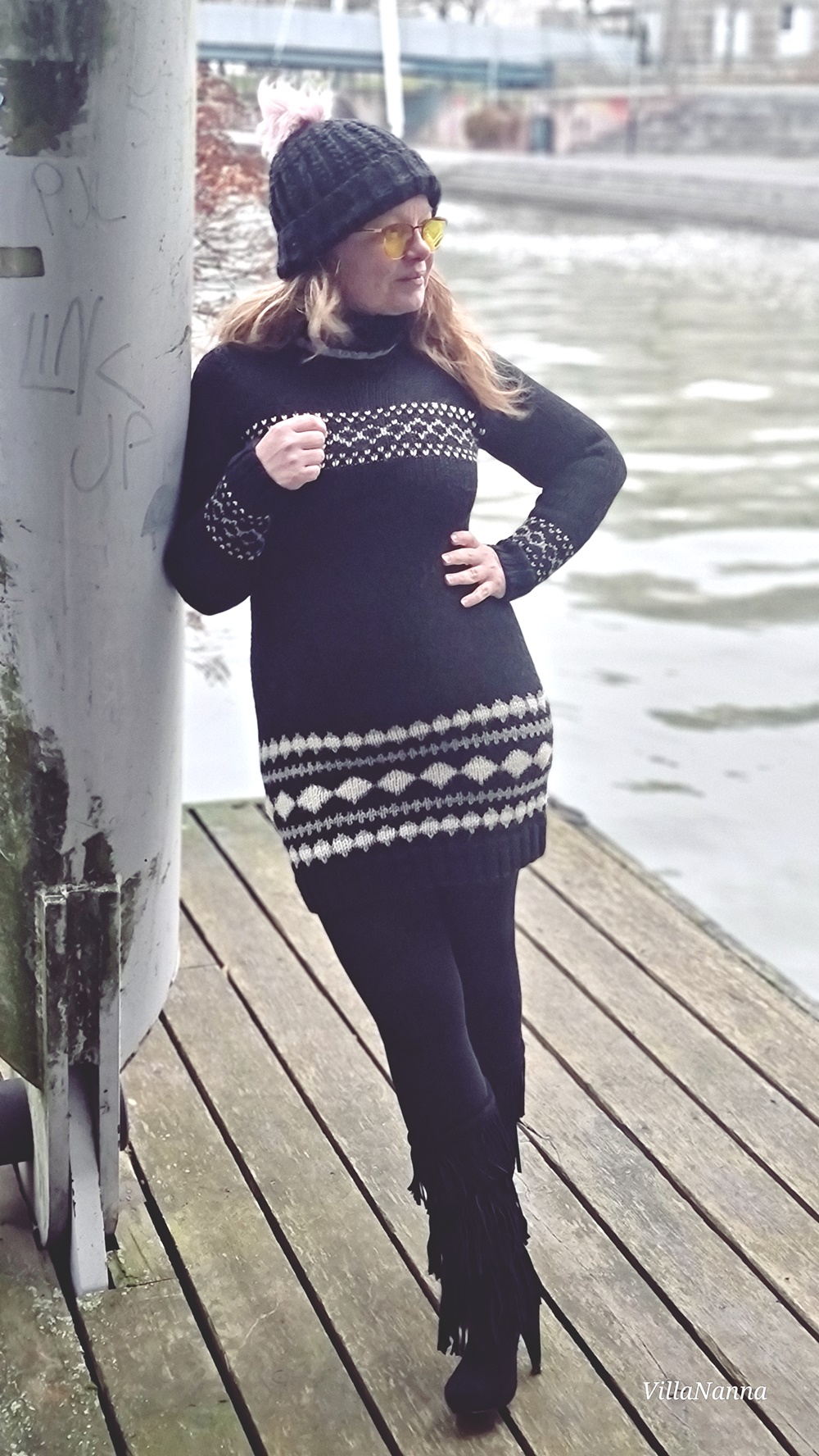 Aivan ihanat kengät ja mekko! <3 Neulemekot ovat ajattomia, pitäisi itsekin teettää tai ostaa sellainen. Saappaiden kanssa ihan loistopari, kivasti tulee kontrastia materiaaleissa ja hapsuissa. 🙂