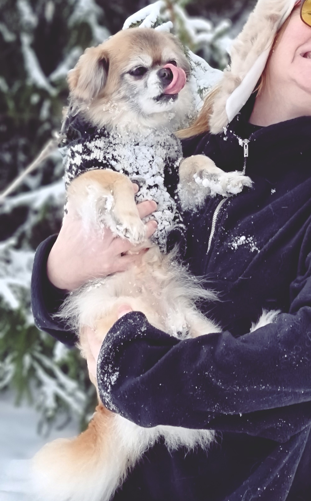 Nuppu on nyt 17 -vuotias ja yritämme helpottaa hänen loppumatkaansa mahdollisimman paljon. Toistaiseksi ei ole kipuja, eikä muita lääkkeitä kuin silmätipat. Sydän toki vuotaa, mutta ei ole vielä aiheuttanut sen enempää vaivaa. Ehkä tilanne tästä muuttuu vielä. Koira on reipas ja iloinen, puolikuuro mummeli. Nuppu on unohtanut täysin, että on minulle vihainen ja on ihanaa miten Nuppu juoksee moikkaamaan minuakin jo kun tulen kotiin. Nuppu on ollut siis siitä asti kiukkuinen minulle, kun Söpö tuli taloon. Mutta on unohtanut koko homman. Näillä mennään ja katsotaan mitä huominen tuo tullessaan.