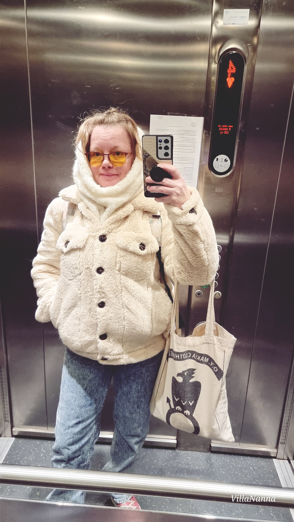 Jos ihan totta puhutaan, en oikein ole koskaan edes ymmärtänyt näiden kuvien päälle. Ongelma minulla on kuitenkin se, ettei minulla arjessa ole enää ketään, joka kuvaisi asujani samalla tavalla kuin ennen. Ei ole autoa, jolla minua kuljettaa töihin ja kotiin. Ei miehellä ole sellaiseen aikaakaan, kun hän käy myös töissä ja aivan eri aikaan kuin minä. En minä halua työpaikalle ennen kahdeksaa, jos päivä alkaa vasta kello 13.00. Joten pakko jotenkin pärjätä omin voimin näiden kuvien kanssa.