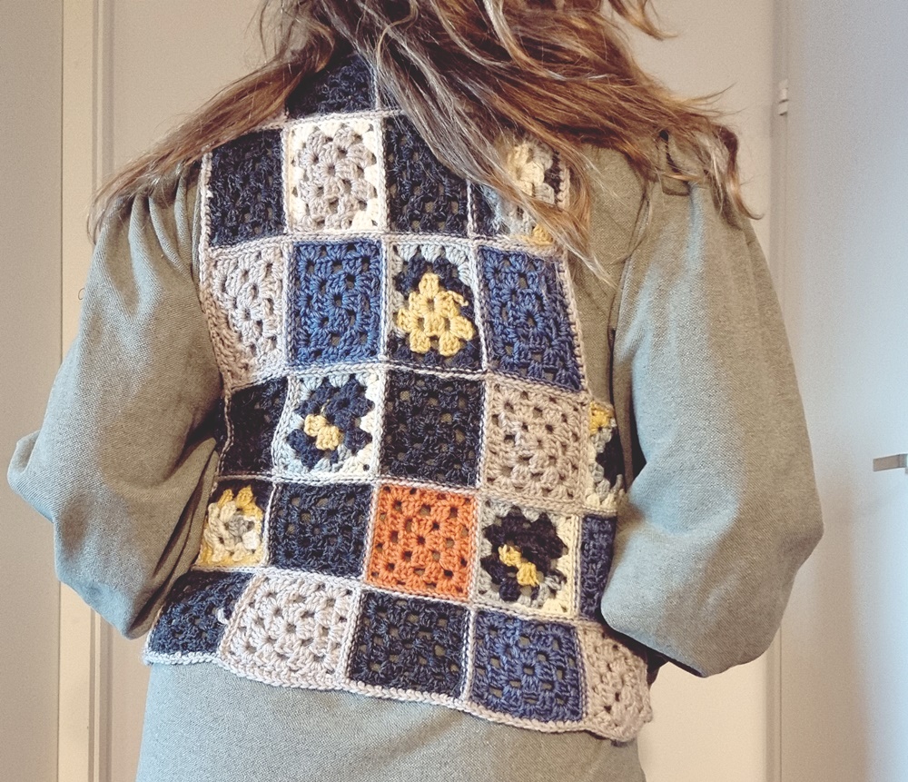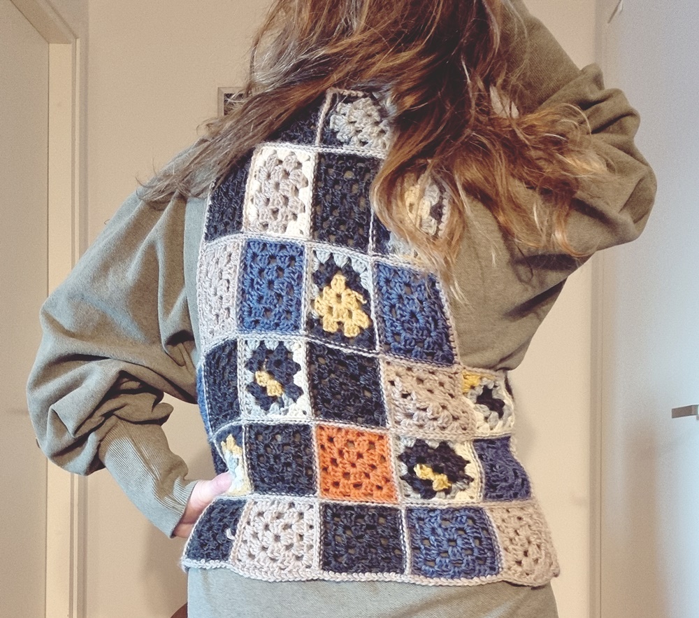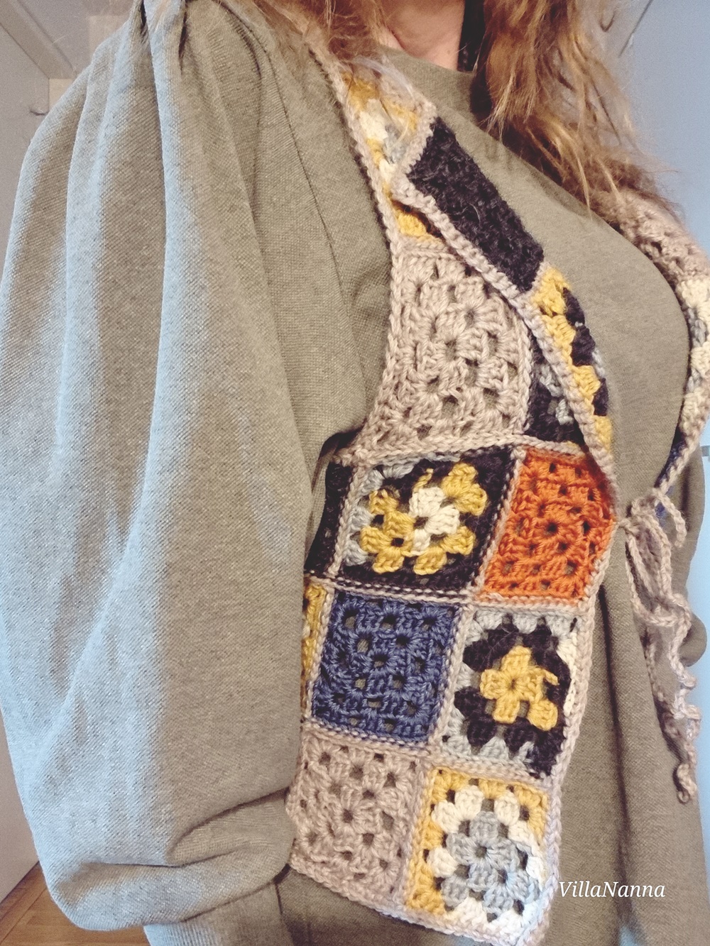 Isoäidinneliö liivi valmistui tässä ihan hetki sitten. Opettelin nimittäin tekemään yksivärisiä isoäidinneliöitä myöskin. Ja tietenkin pienempiä, mitä tein balaclavaan. Olen todella innoissani nyt näistä virkkauksista. Mutta tietenkin kun aloitin projektin, en vielä ihan tiennyt, mitä niistä teen. Mutta tehokkaasti sain langanjämiä toiseen muotoon.