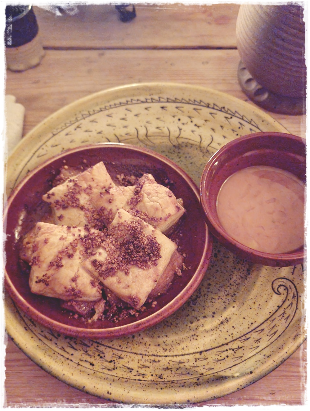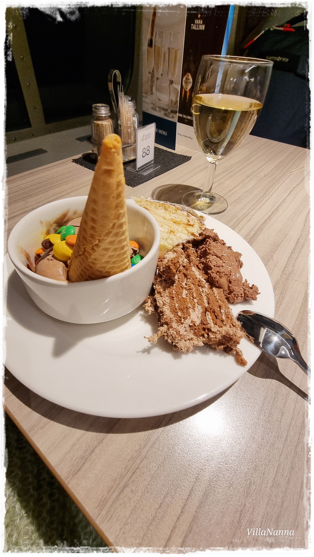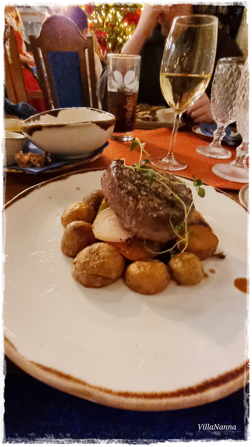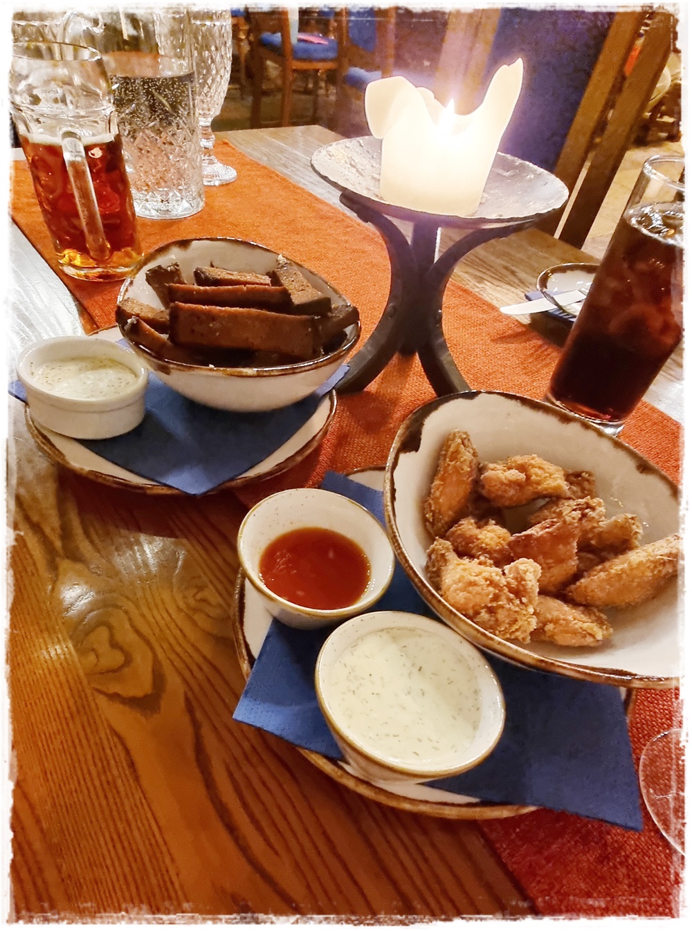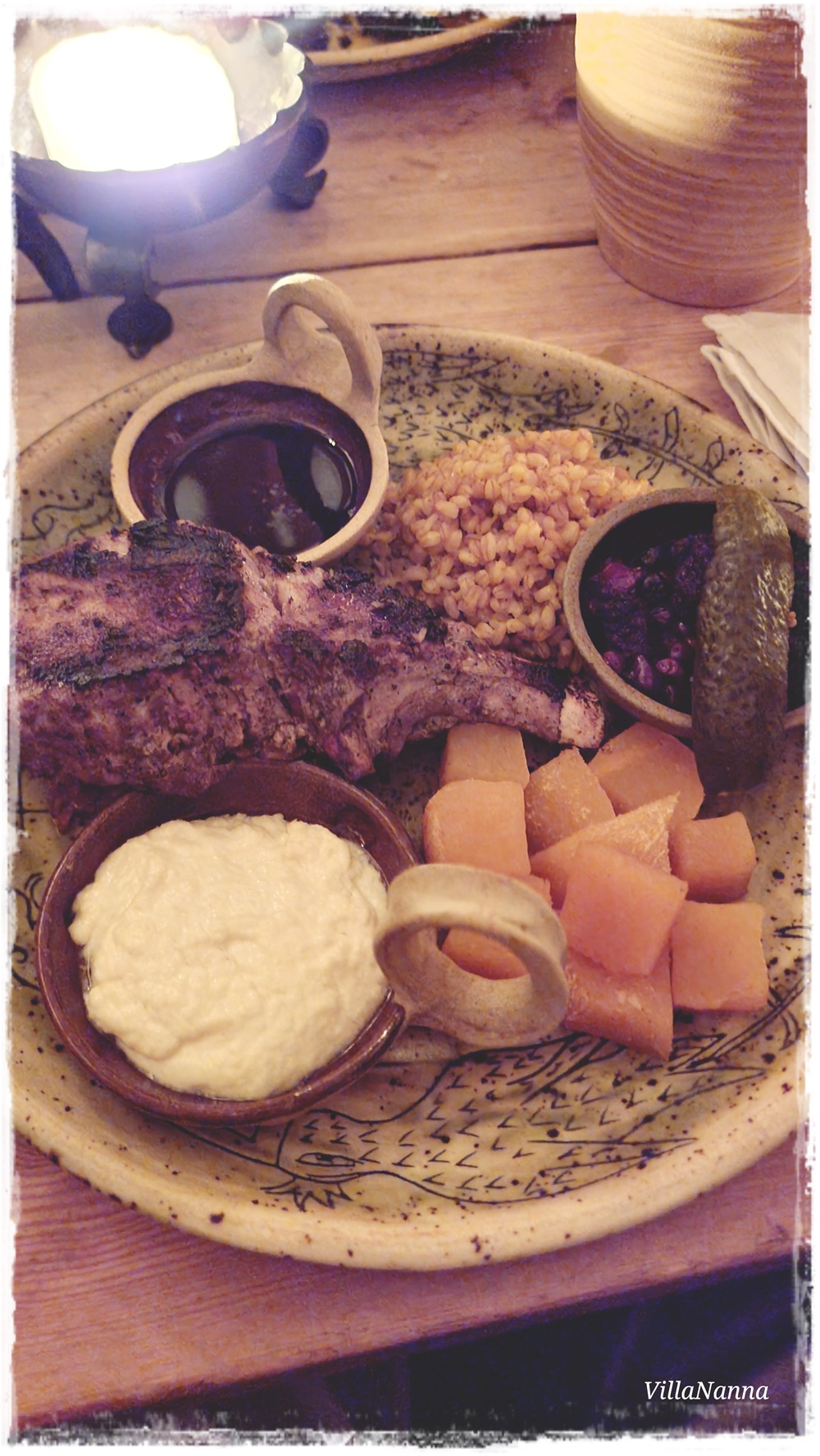 Jälleen kerran saimme erittäin hyvää palvelua ja ruoka maittoi. Elävä musiikki johdatti meidät heti kohti keskiaikaa. Meidän pieni nurkkapöytä oli rappusten alla vähän piilossa. Oltiin aika väsyneitä päivän riennoista, joten voin sanoa, ettei illallinen mennyt meidän osalta ihan nappiin, mutta ruoka oli hyvää ja söimme hyvin. Poika tykästyi eniten Olde Hansan tunnelmaan.