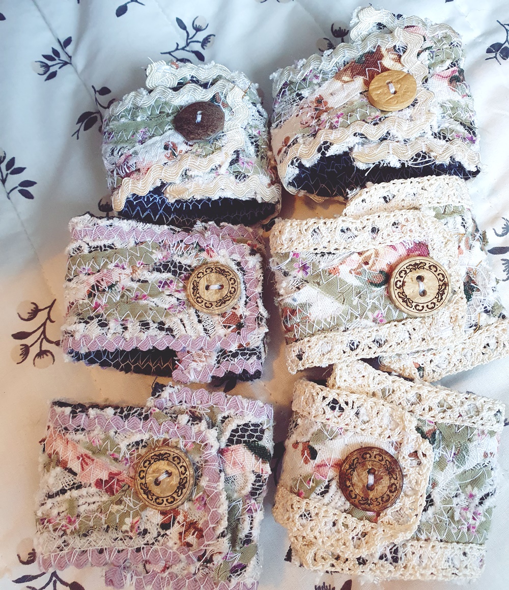 Otetaan esimerkiksi ylijäämäprojektini, jota tällä hetkellä työstän. Kun lähden suunnittelemaan seuraavaa työtä, valitsen erilliseen koriin tuosta ylijäämälaatikosta materiaalia, en vain yhtä vaan useampaan eri ideaan. Näiden ideoiden jämät laitan samaan koriin ja kun tuo tietty ideakori on sitten tehty valmiiksi, alan tekemään niistä jämistä jotakin kiinnostavaa. Ja pyrin hyödyntämään kaiken. Aina se ei onnistu ja vielä ne palat, joita voi jossain hyödyntää menee takaisin projektilaatikkoon.