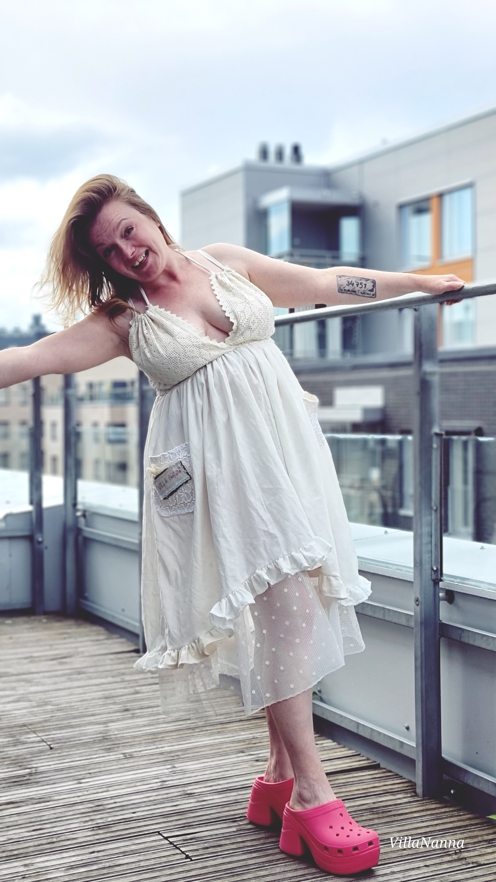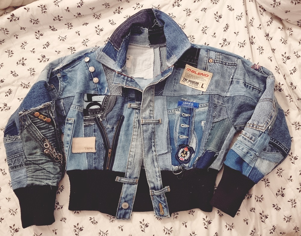 Jossakin kohtaa voi olla tilanne se, että voin yhdistää eri projektien jämät toisiinsa ja luoda jotakin ihan sekopäistä, kuten tein aikanaan hihakkeet neuleiden -ja collegekankaiden jämistä. Tai kun sekoitin farkkua ja collegekangasta toisiinsa. Tällä tavoin luon kokonaan uusia persoonallisia vaatteita.