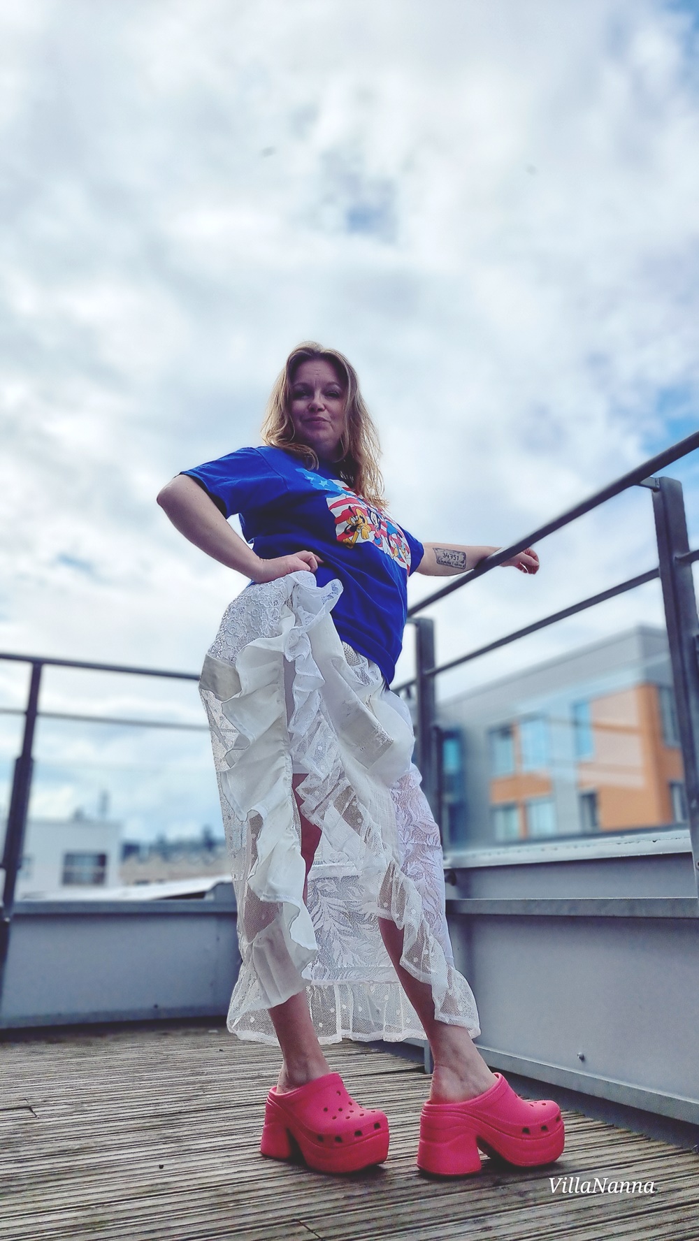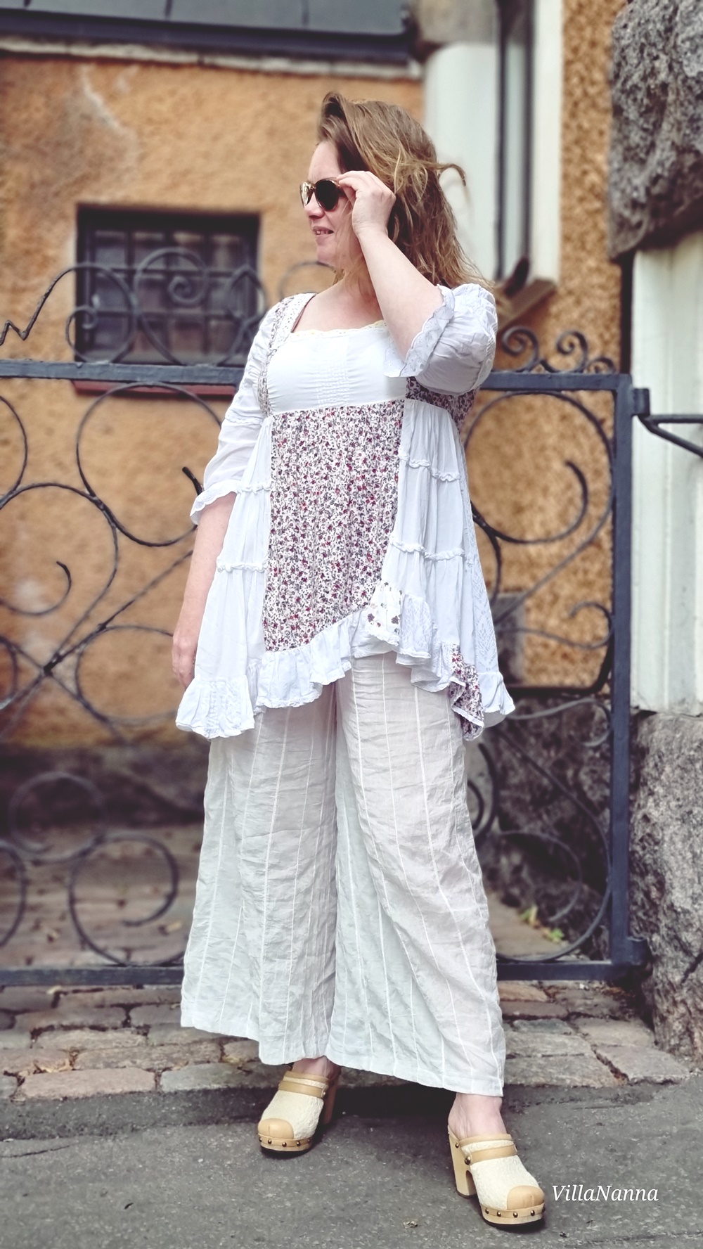 Erilaisiin projekteihini kuuluu myös se, että pyrin tekemään asioita myös erilaisista jämistä, kuten tein kesällä valkoisista materiaaleista, joita jäi yli eri tuunauksista. Tein niistä jämistä tämän mekon.