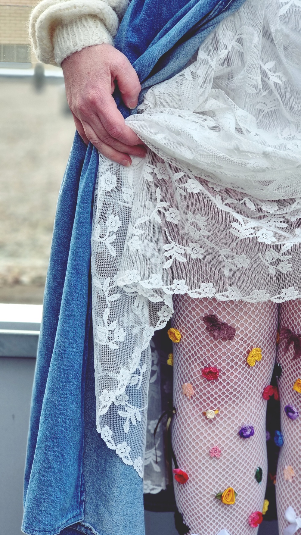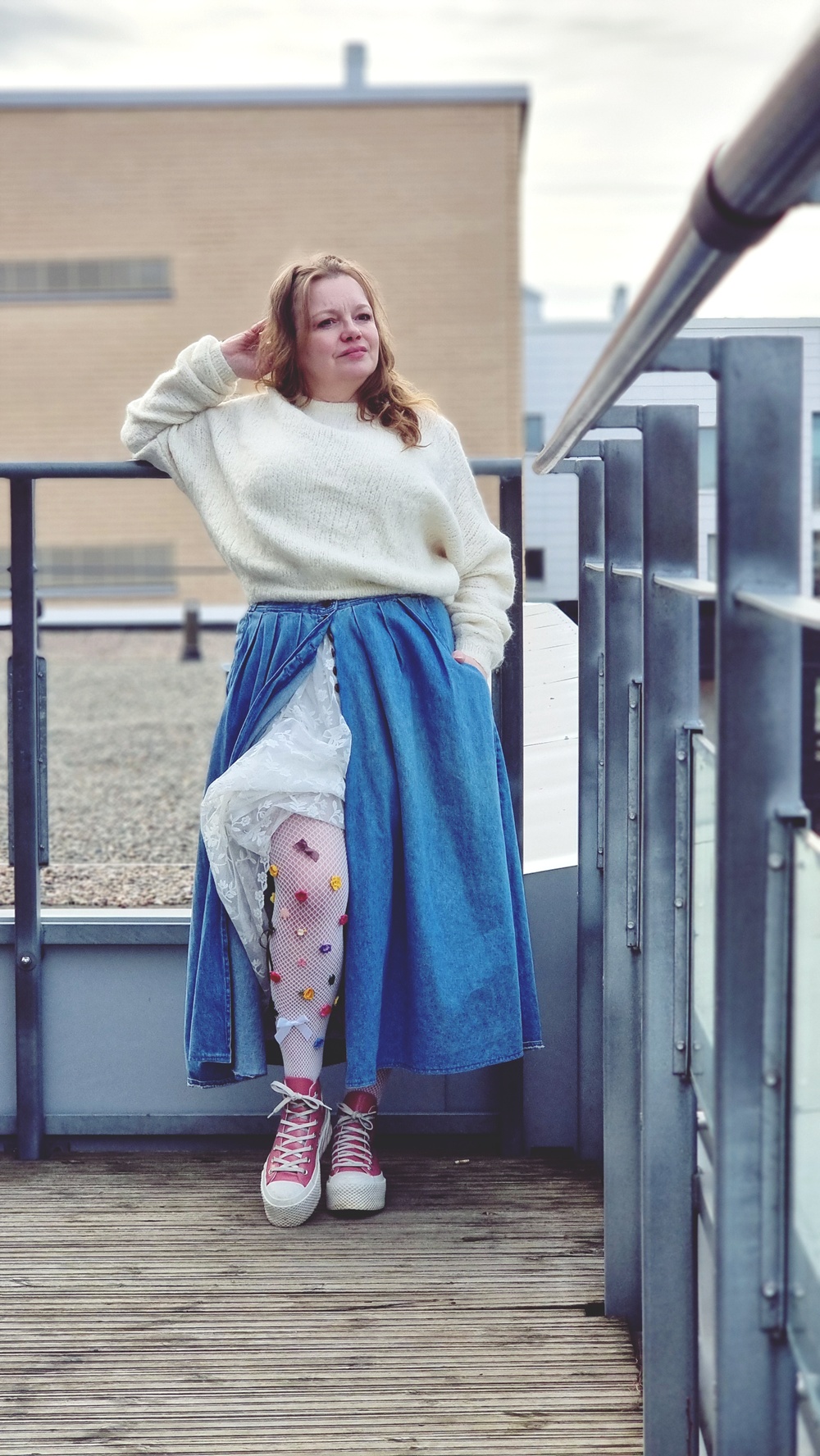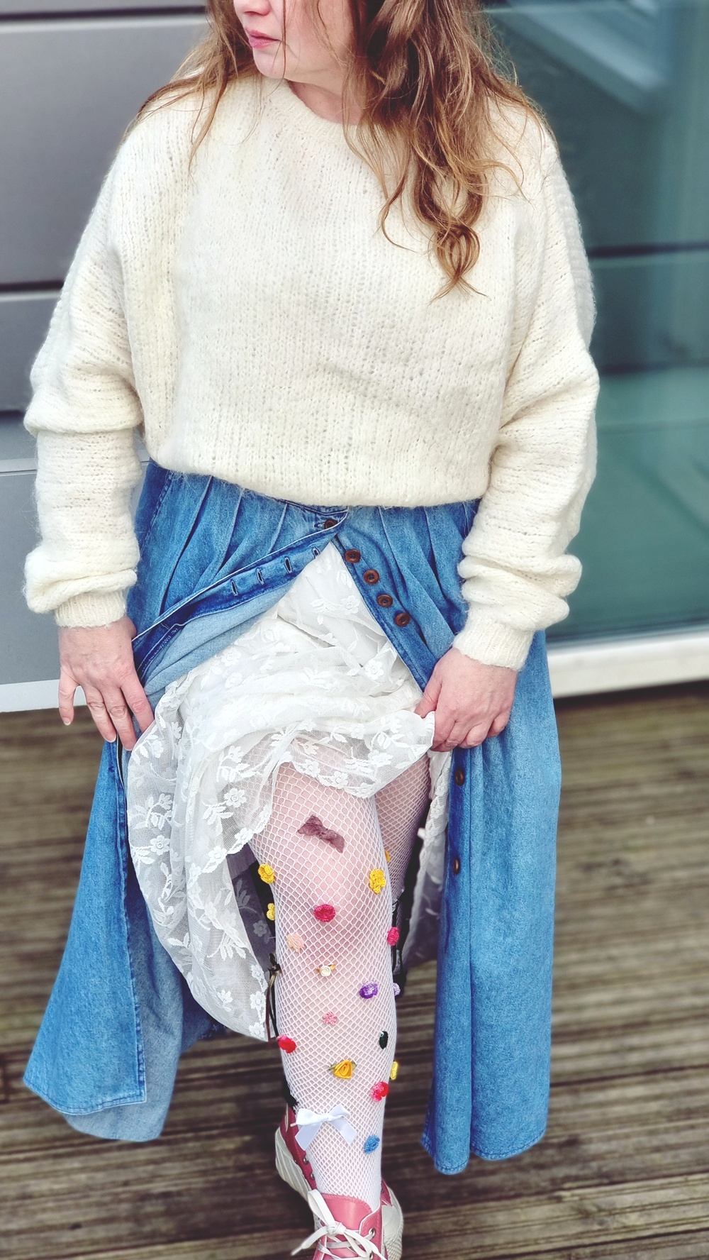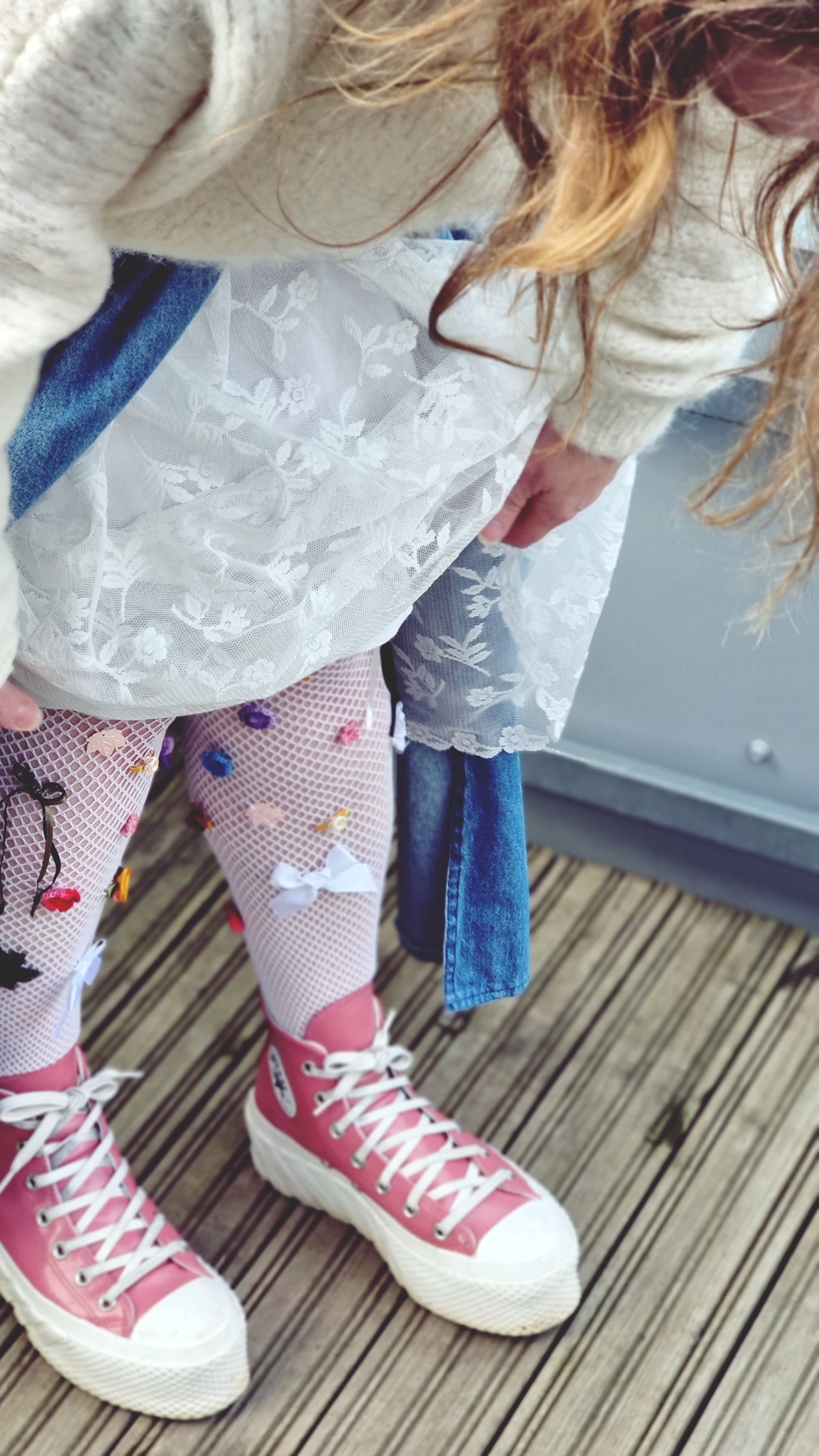 Nyt tulee hiukan somesta lainattua. Tässä muutama kuukausi sitten törmäsin Instagramissa viedeoon, josta innostuin paljon. Ajattelin, että tuommoiset sukkikset on pakko saada. Siksi sukelsin syvälle sukkahousulaatikkooni, pengoin ja pengoin ja vihdoin löysin valkoiset verkkosukkikset, joita en oikeastaan missään koskaan käytä. Siitä homma lähti etenemään.