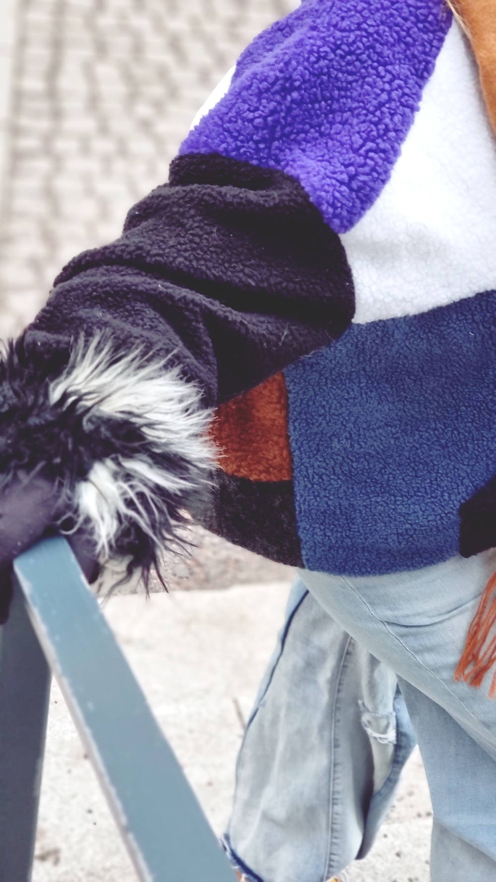Eli kaikki on vähän sikinsokin ja silti oikeissa paikoissa. Sinapinkeltainen olisi saanut olla isommassa osassa, mutta sitä kun ei ollut kuin yhden palan verran, niin on turha itkeä sitä sitten, itken kuitenkin. Mutta tällä tavalla ei tarvitse pelätä, että menisi leikkuujäte roskiin. Uskaliaasti vain hyvödyntämään ne ja ei haittaa vaikka ei niin sovi toisiinsa. Tässäkin keinoturkis ei ole kaikki samaa vaan kaikkea sekaisin.