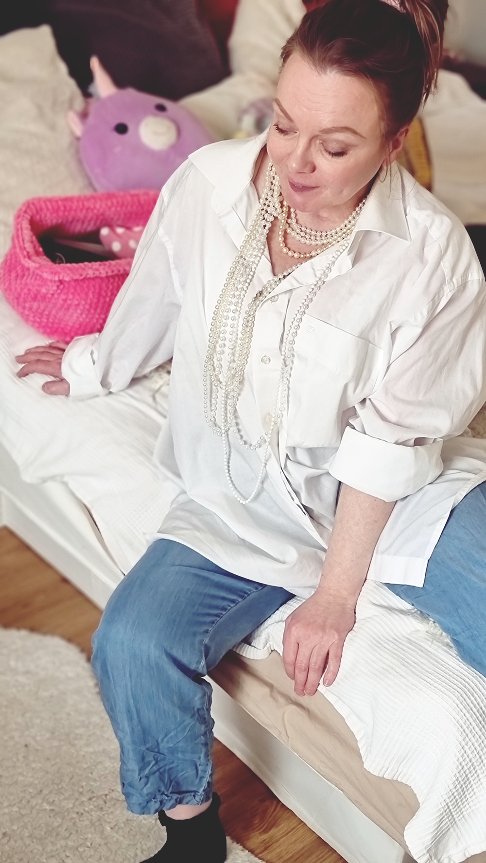 Meillä ei piilotella ”kalliita mutta epämukavia”, ”jos laihtuisin viisi kiloa” tai ”ehkä ensi kesänä” -vaatteita. Meillä rakastetaan vaatteita, jotka istuvat tänään. Nyt. Niitä, jotka hymyilyttävät peilissä, eivätkä kiristä nivusista. Jos vaate ei tunnu hyvältä, se ei jää. Piste. Kaappi ei ole terapiahuone väärille ostoksille, se on koti lempivaatteille.