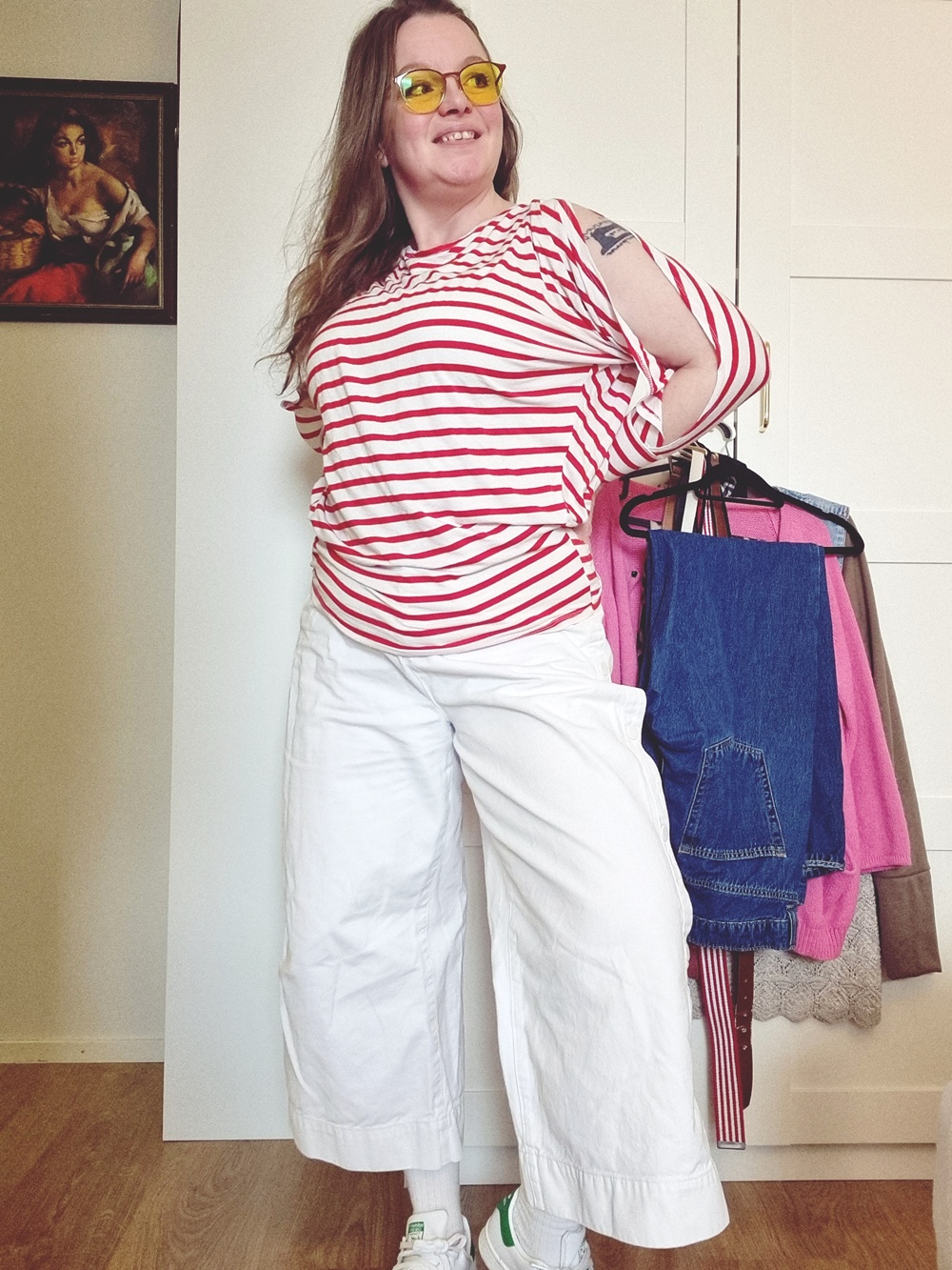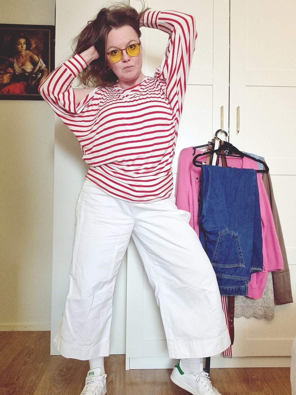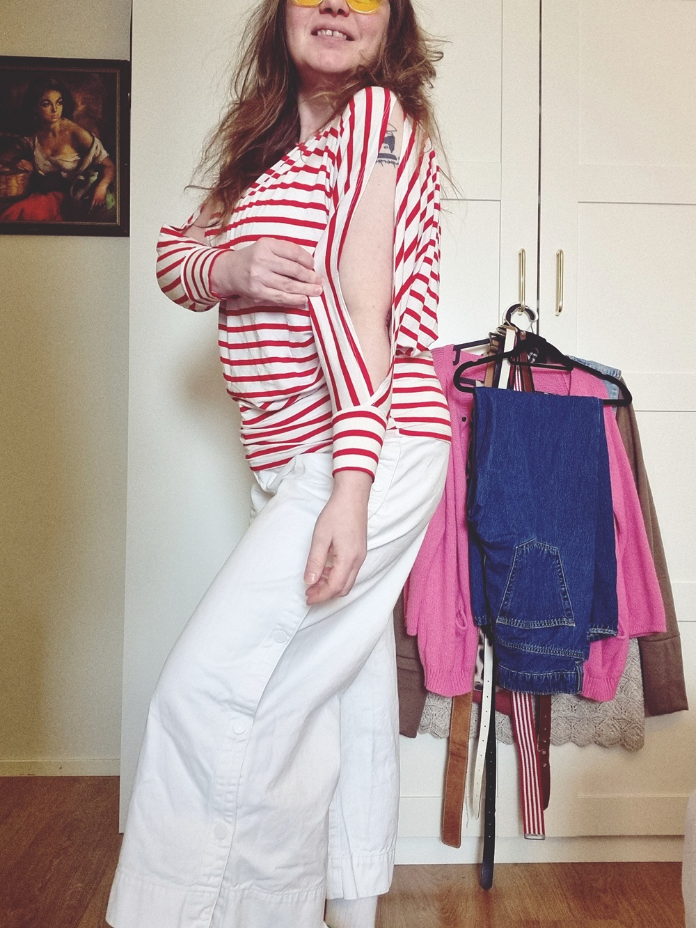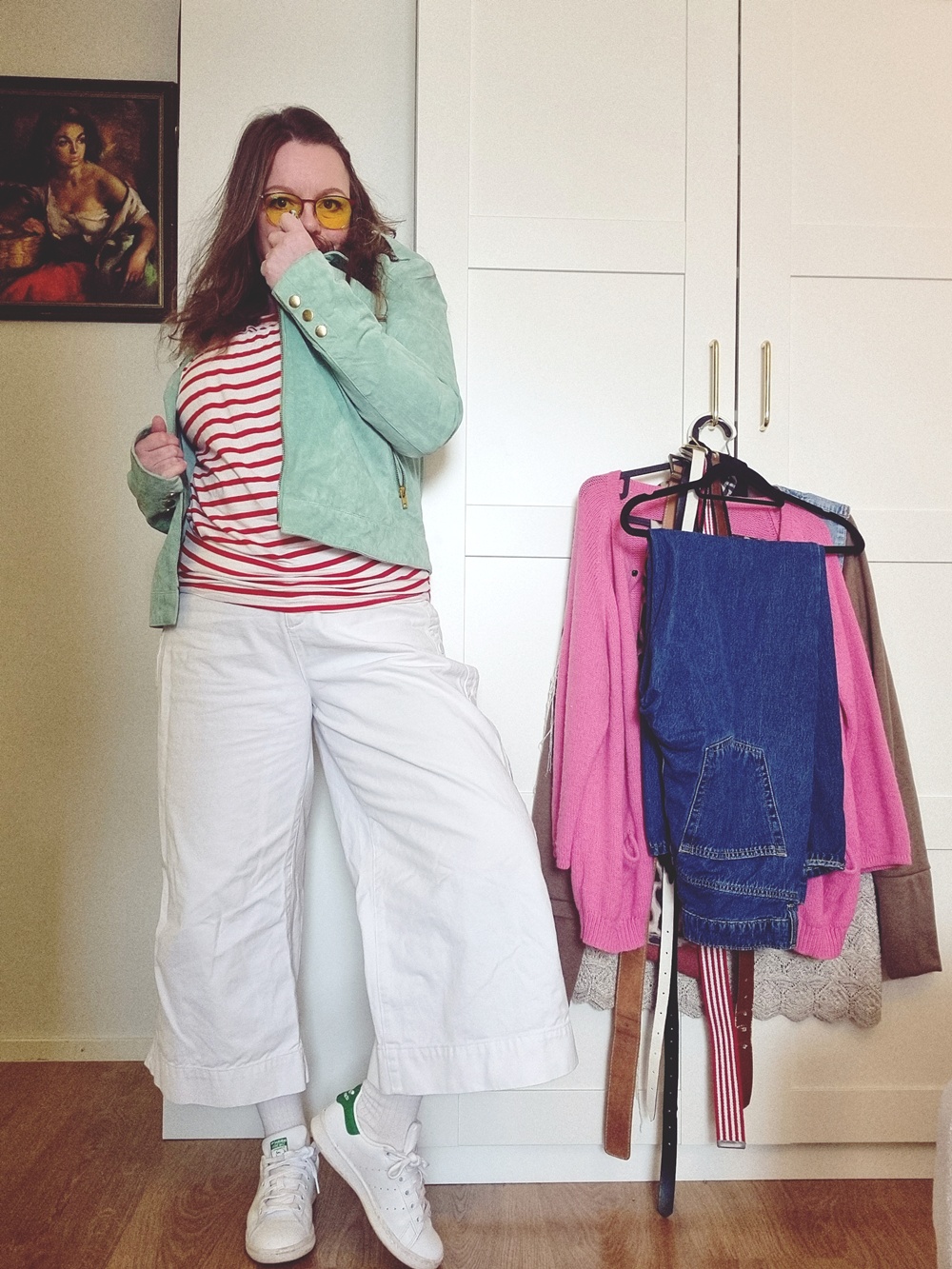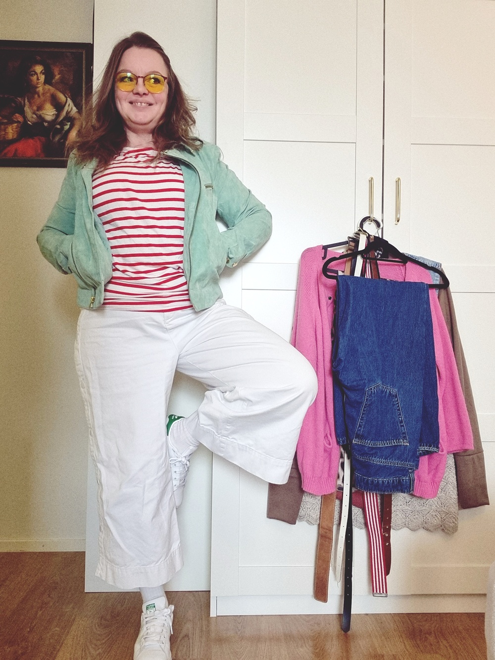 Vaatekaappipäiväkirja: Kun mariannekarkki kohtaa mintun ja nepparit paukkuu. Kyllä muuten elämä hymyilee, kun saa vetää ylleen vähän kirppariaarteita ja itse tehtyä paitaa, joka on nähnyt enemmän vuosia kuin keskivertoinen Netflix-sarja! Tervetuloa tämän päivän vaatekaappipäiväkirjan äärelle, tämä look on kuin mariannekarkki: raikas, yllättävä ja vähän koukuttava.