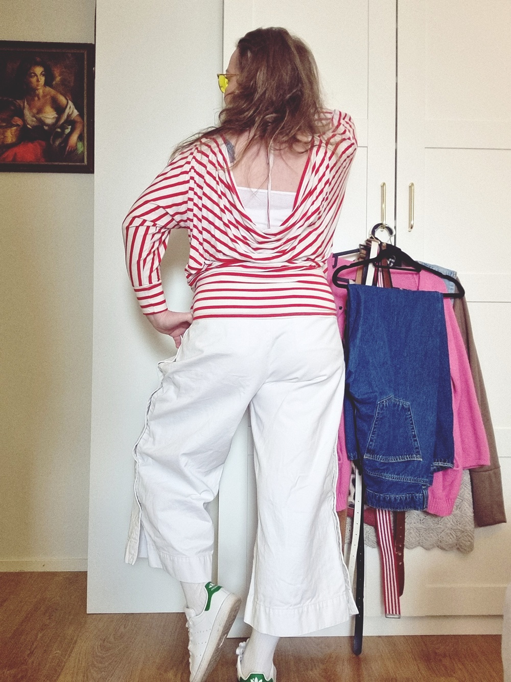 Tämä asu on juuri sitä, mitä vaatekaappipäiväkirjani on sekoitus vanhaa, uutta, tehtyä, löydettyä, vähän hassua ja ennen kaikkea hyvää fiilistä. Ja vaikka naapurit ehkä ihmettelivät, kun kuvasin itseäni makuuhuoneen nurkassa keltaisissa aurinkolaseissa ja tukka sekaisin, niin hei tärkeintä on, että minä viihdyn. Ja todellakin viihdyin!