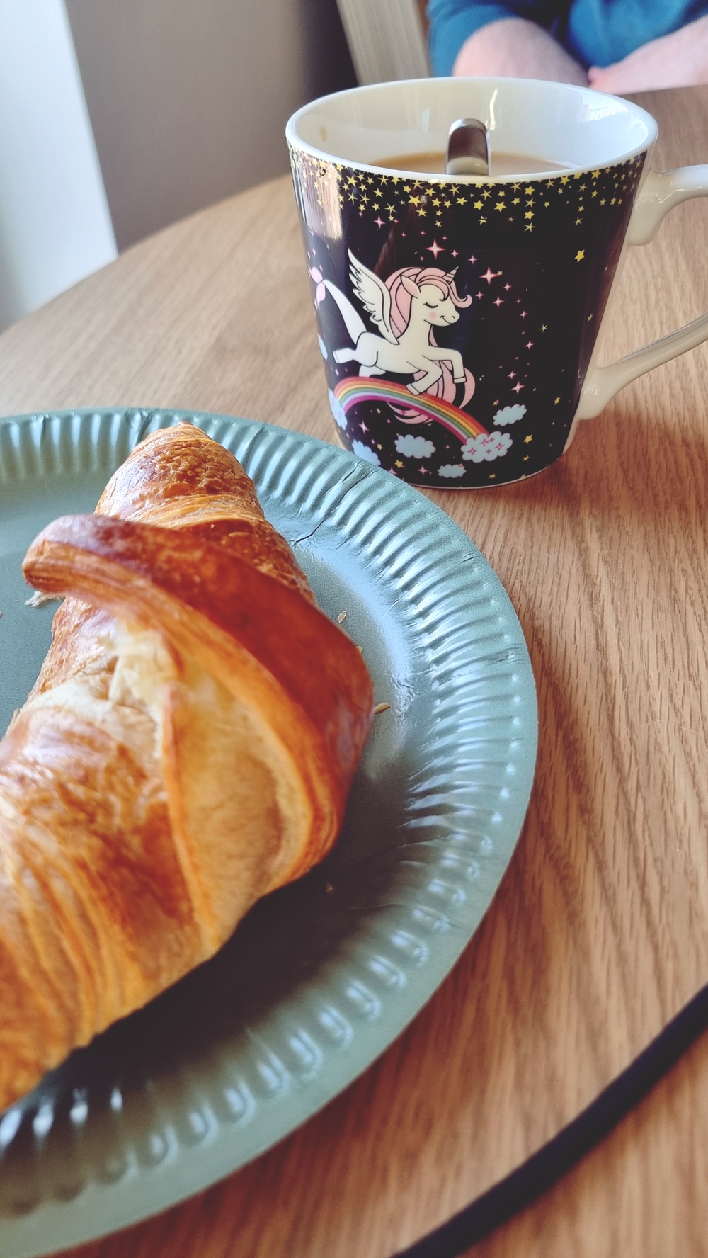 - kahvikuppi, croissant, geishaleivos. Pöytä, johon on kaatunut sekä maitoa että ajatuksia. Nämä ovat niitä hetkiä, jolloin elämä tuntuu hetken verran elokuvakohtaukselta. Tai ainakin hyvältä mainokselta. Kaikki ei tarvitse tarkoitusta, joskus se vain on. Ja se riittää.