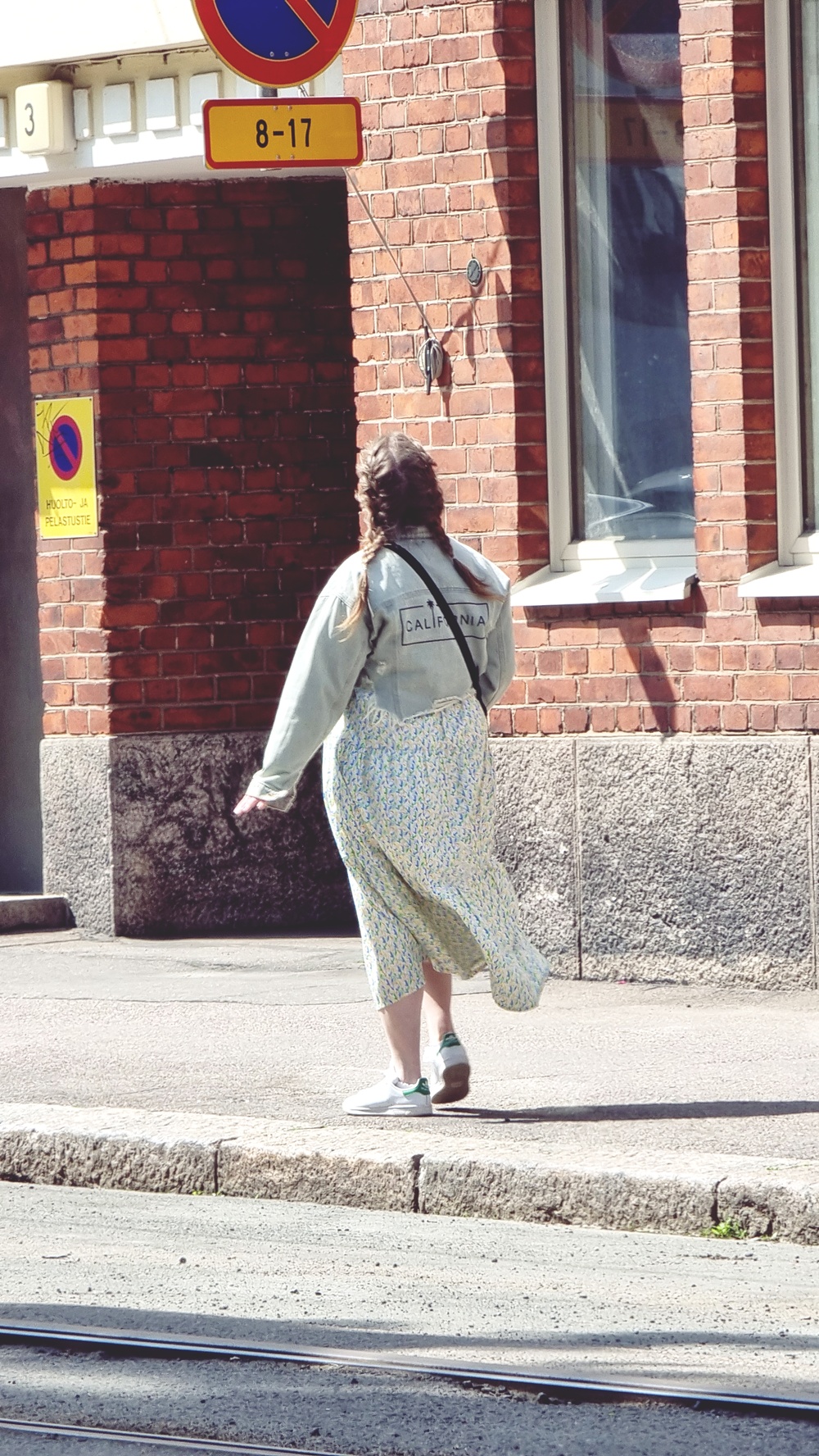 Ehkä eniten sitä, että pienet retket voivat olla suuria. Että kaupungin halki kulkeva ratikka voi johdattaa sinut hetkeen, jota et tiennyt kaipaavasi. Että lämpö voi löytyä yhtä hyvin farkkutakin selkätekstistä kuin aurinkoisesta kesästä. Ja ehkä myös sen, että jokainen valinta, vaatekappale, reitti, seura, voi tehdä päivästä tarinan arvoisen.