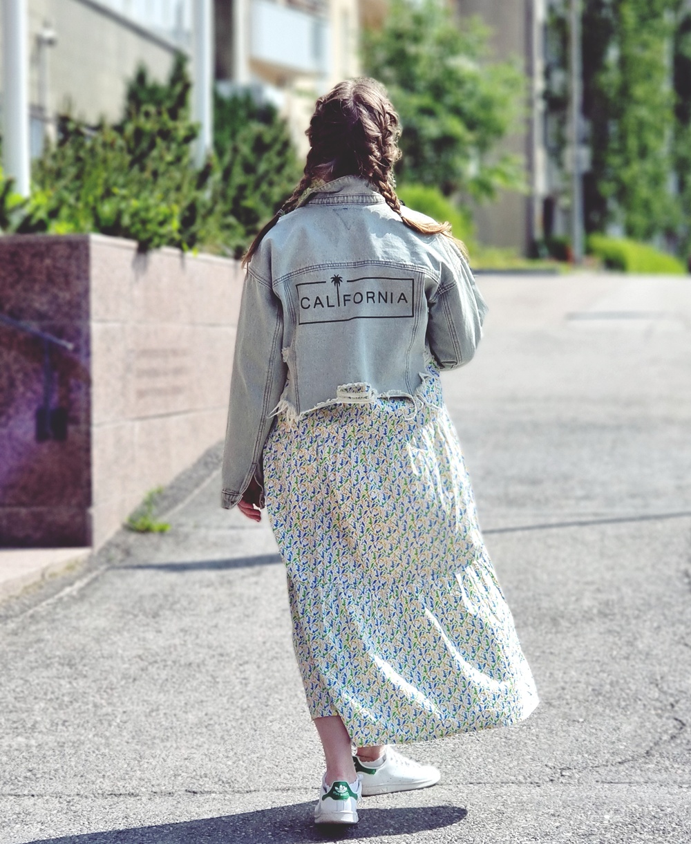 • Sen päällä lämmitin itseäni farkkutakilla, jonka olen ostanut pienen pienestä kaupasta Venice Beachiltä, Kaliforniasta. Se ei ollut mikään suuri liike, oikeastaan melkein huomaamaton, ellei olisi tiennyt katsoa. Siellä nainen painoi selkään valitsemallani fontilla sanan California. Muistan vieläkin sen hetken: meri, aurinko ja suolainen tuuli hiuksissa. Nyt tuo takki on kantanut ne hetket mukanaan tänne Helsingin kesäpäivään.