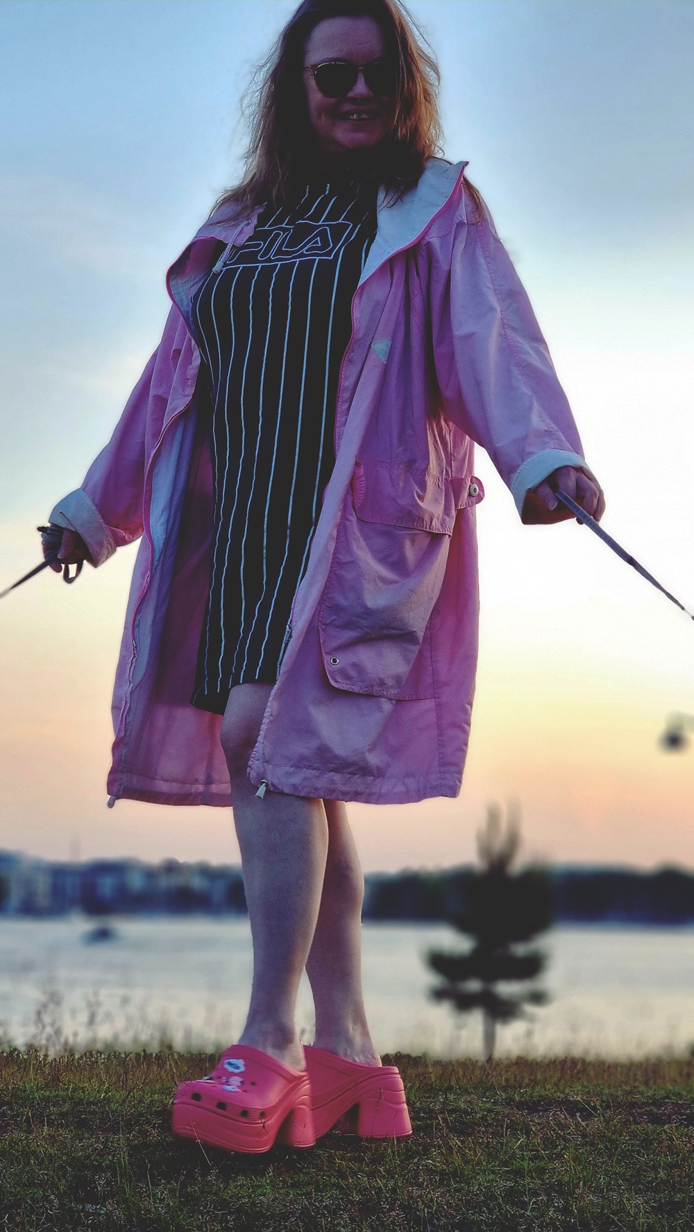 - Ja kengät? Ne ovat Crocsit. Kyllä, ne kamalat ja ihanat, ergonomiset ja esteettisesti kyseenalaiset kumikengät, joita voi rakastaa vain täysillä tai ei ollenkaan. Ne olivat pelastukseni, kun matkalaukun vetoketju hajosi, juna oli myöhässä ja kantapäät huusivat hoosiannaa. Kotona ne odottivat eteisen nurkassa kuin vanhat rakastajat, vähän kuluneet, mutta yhä täydelliset.