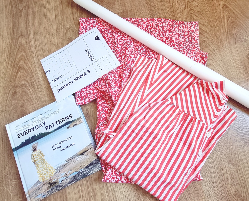 No, minä päätin yhdistää ne. Leikkasin, sommittelin, surautin, ja kas! Syntyi hame, joka tuntuu enemmän itseltäni kuin kumpikaan alkuperäinen vaate koskaan teki. Hameessa käytin kaavana Lotta Jansdotterin Everyday Patterns -kirjan mallia, joka on yksi suosikeistani. Selkeä, monikäyttöinen, ja juuri sopivan “tee-se-itse mutta tyylillä” -henkinen, jonka nimi pitäisi kyllä vaihtaa muotoon Magic Happens Here.