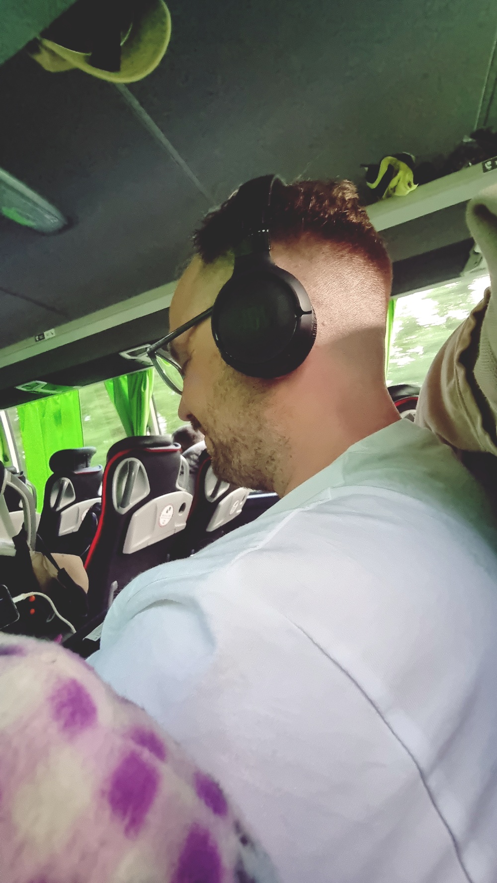 (Nousu bussiin. Penkit ovat siedettävät. Viltti, korvatulpat, hengähdys. Matka voi alkaa… hetkeksi.)