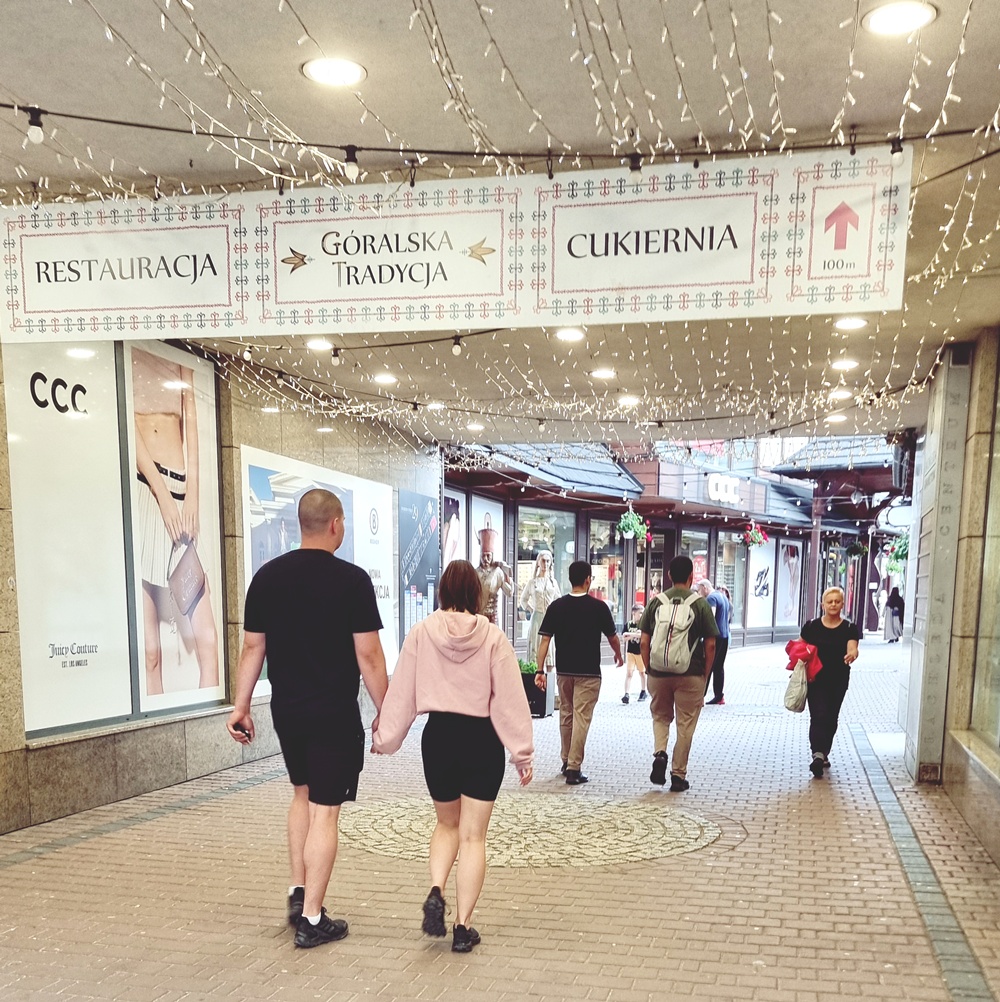 Tänään päätimme heittäytyä siihen, mitä Zakopane tarjoaa: turistin elämään, rehellisesti ja ilman ironiaa. Otamme funikulaarin kohti Gubałówkaa, vuorenhuippua, jonne kulkee kaikki ja jonne kaikki myös jäävät vähän jumiin. Nousemme hitaasti kohti huippua, ja ylhäällä meitä tervehtivät rivit myyntikojuja. On villahattuja, aurinkolaseja, puukkoja, kiinakrääsää, tekonahkaa ja halpoja magneetteja. Värit huutavat, kojut kilpailevat huomiosta, ja jossain välissä on myös niitä aarteita: käsintehtyjä villatakkeja, puisia kulhoja ja nahkatöitä, joiden hinta tuntuu äkkiseltään suolaiselta. Mutta toisaalta, niin on myös niiden tekeminen.